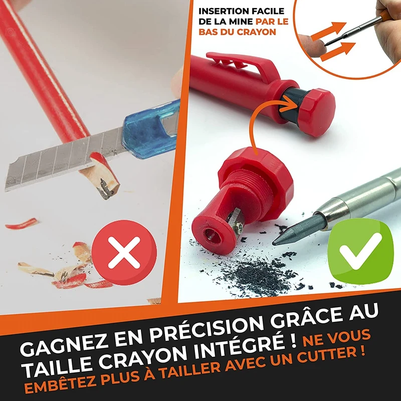 THE BEST PENCIL RECOMMENDED BY PROFESSIONALS! This carpenter pencils marker has everything a do-it-yourselfer needs: it's solid, precise, practical, and thanks to its red color it can be found everywhere! Even in the middle of a construction site. Moreover, its fine point of 6 mm and 43 mm long allows him to go and draw in the holes where other grease pencil do not go. And if you extend the lead you can even draw in the 2.8 mm holes!
