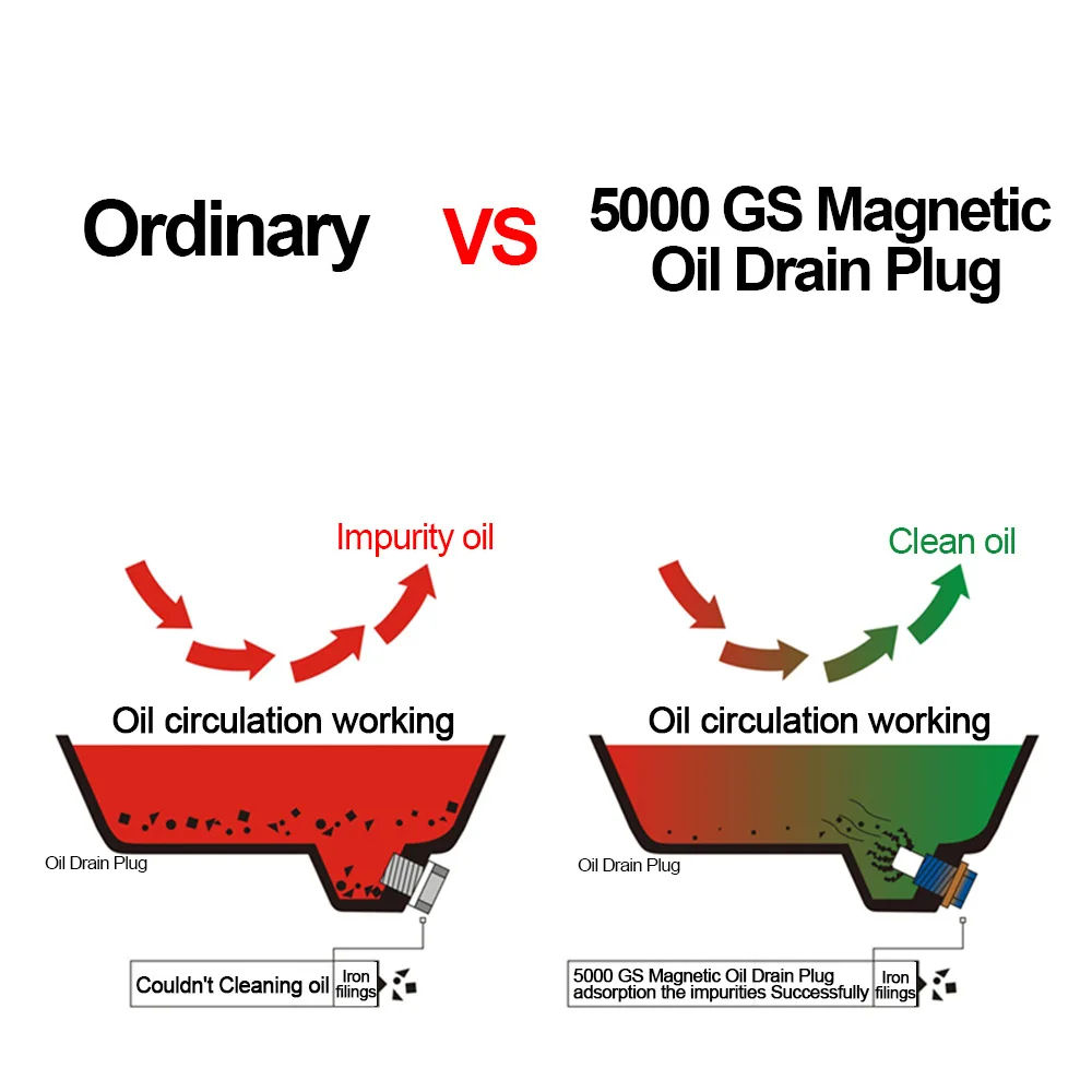 Nel corso del tempo il vostro motore componenti trucioli di usura giù che inizierà a metalliche di sblocco nel tuo motore di olio. -Questi tappi per le orecchie hanno un incredibilmente forte magnete per aiutare a raccogliere questo pourtti direttamente fuori del vostro olio durante funzionamento.