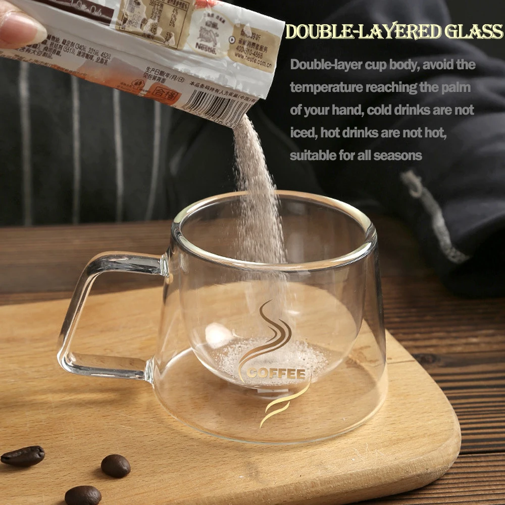 1. Креативный дизайн с двумя стенками: двойное стекло и ручки облегчают чашку, не беспокоясь о ожогах, классические и элегантные, высококачественные кофейные чашки, позволяет вам наслаждаться приятным опытом хорошего времени;