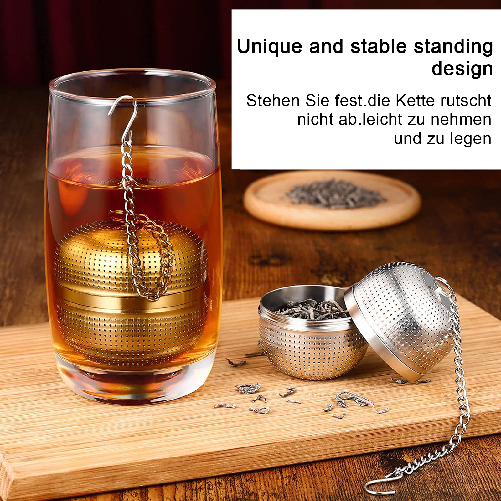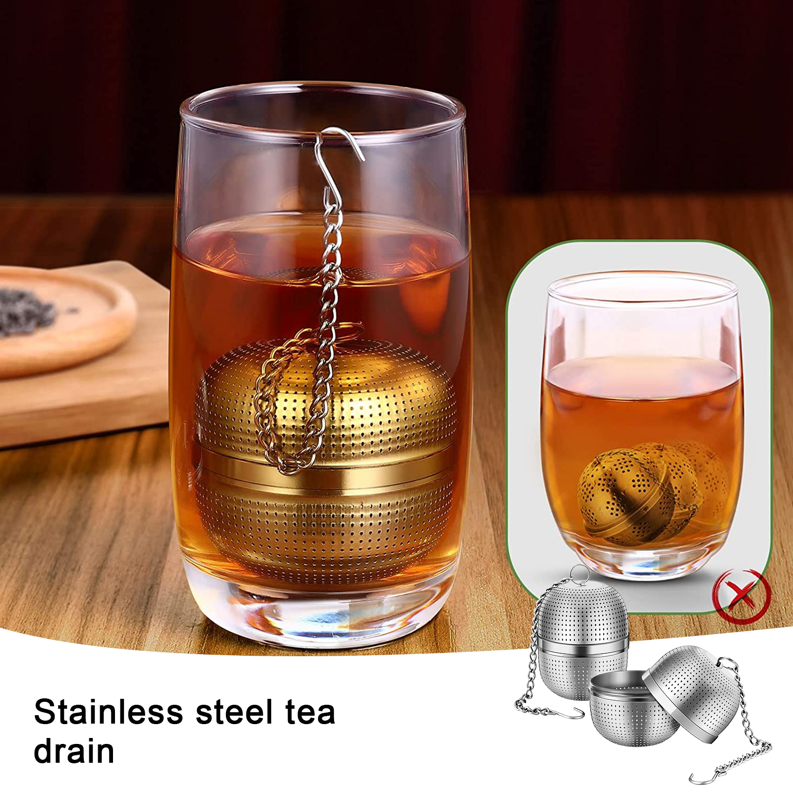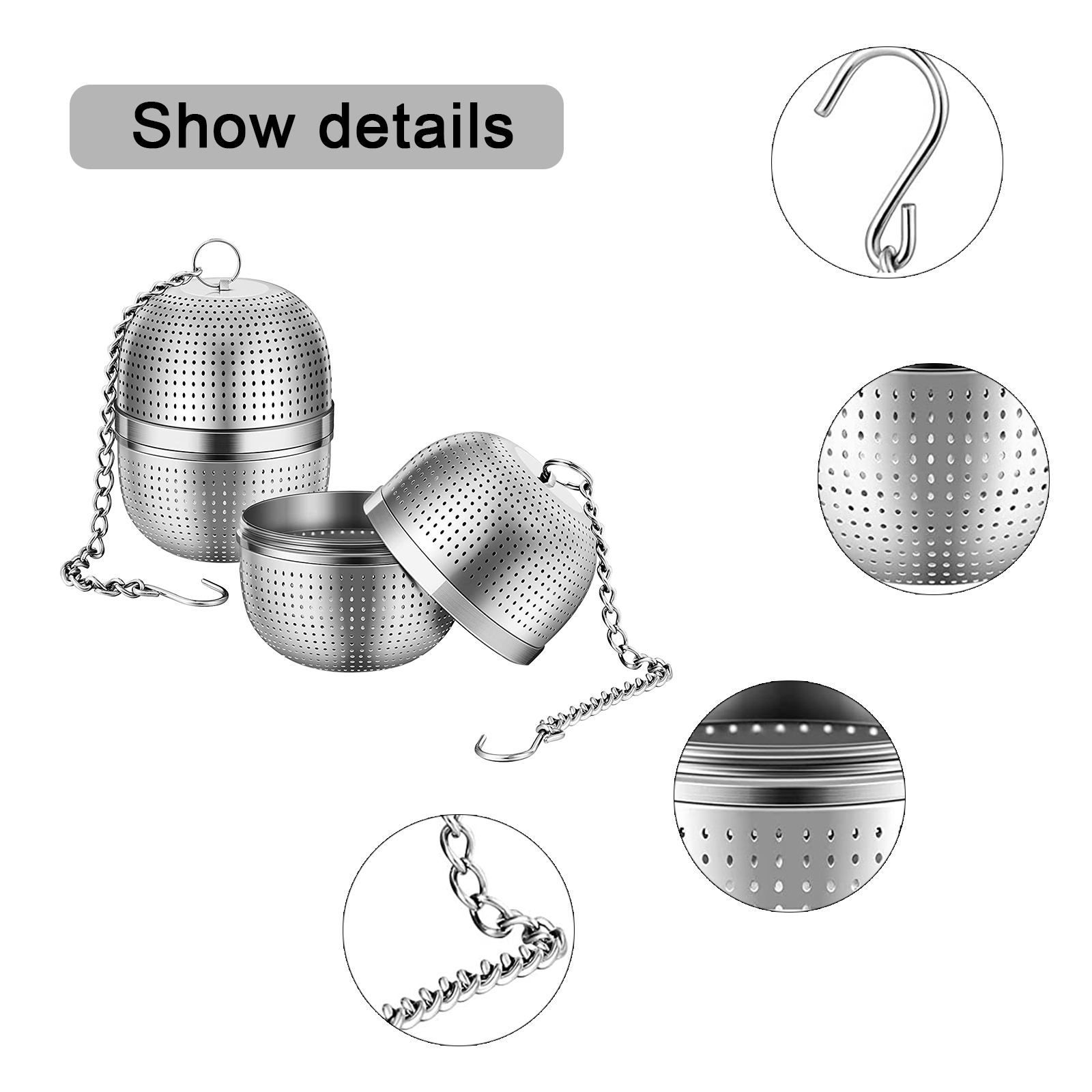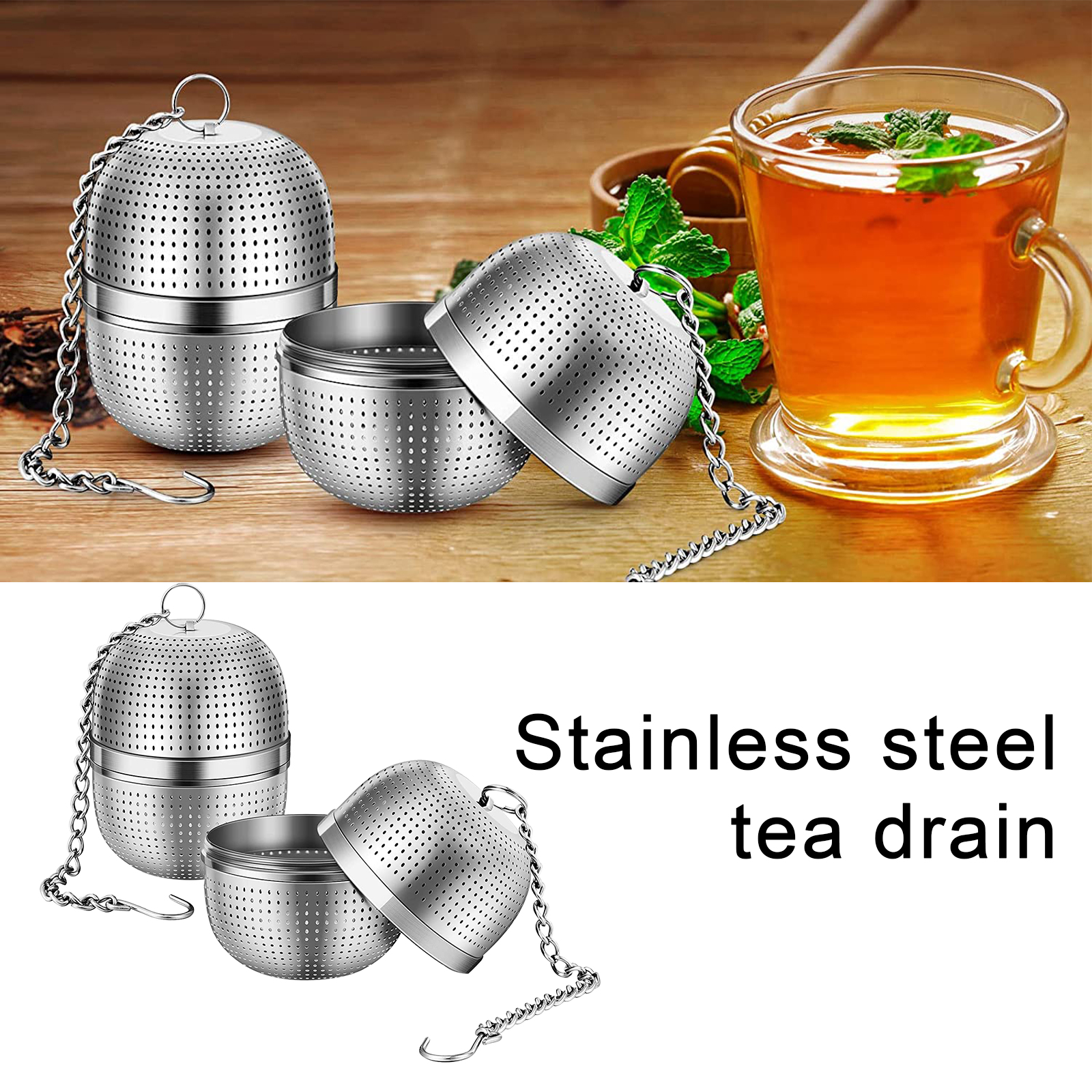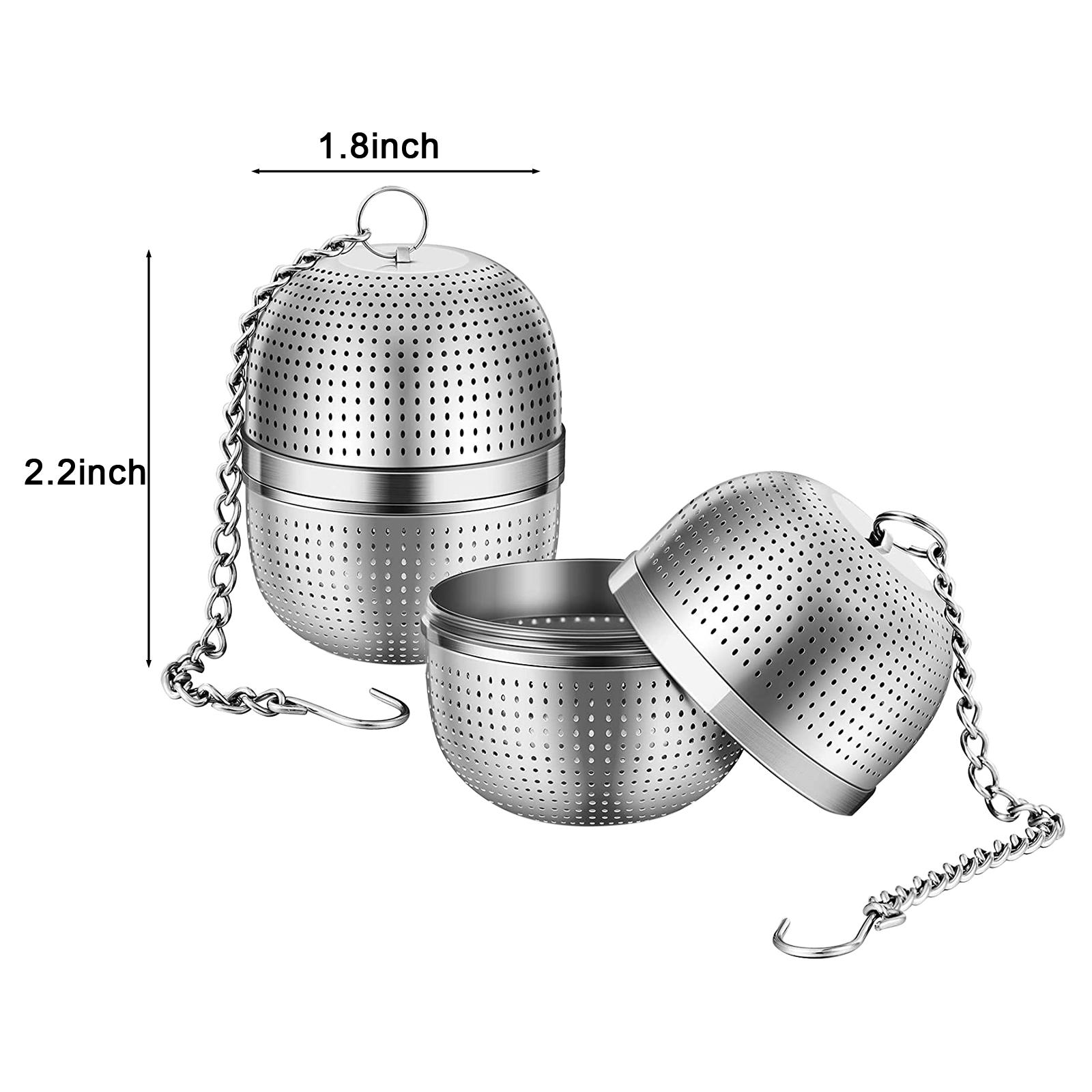 Стабильное Основание: набор чайных ситечек может прочно стоять в чашке и чайнике, в отличие от других качающихся ситечек для чая. Цепь с крючком не будет скользить в чашку из-за качания, чтобы избежать обжига. Легко выбрать и разместить