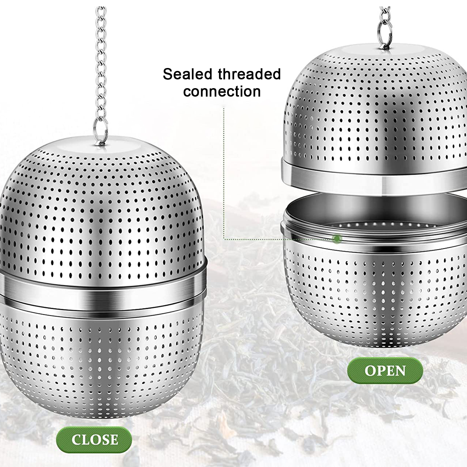 Герметичная конструкция резьбы: стальной пояс для чайного сита с резьбой имеет хорошую герметичность, а чайные листья не будут течь во время пивоварения. Поверните гайку, чтобы легко решить проблему отключения, легко открыть и закрыть