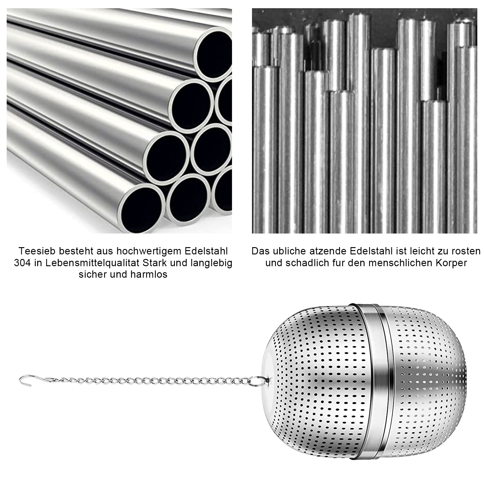 Ситечко для чая из нержавеющей стали: наш тонкий металлический ситечко для чая изготовлен из пищевой нержавеющей стали 304, которая является здоровой, безопасной, без ржавчины и без запаха, вы можете наслаждаться ароматом черного чая и зеленого чая. И другой Свободный чай, приготовленный округлым чайником и семьей