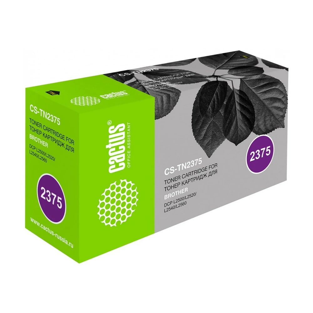 Картридж лазерный Cactus CS-TN2375 используется в лазерных печатающих устройствах для распечатки различных документов. С этим расходным материалом вам гарантированы профессиональные результаты печати с хорошей цветопередачей и отсутствием смазанных контуров или текста. Данная модель имеет достойный ресурс, равный 2600 страницам при условии заполнения 5% страницы стандартного формата A4), что делает ее приобретение оптимальным для домашнего использования, а также для использования в офисе с небольшим ежемесячным документооборотом. Лазерный картридж Cactus CS-TN2375 гарантирует безупречную работу с отличными результатами печати. Модель заправлена черным тонером, благодаря чему ее можно использовать для распечатки различных документов и печати черно-белых изображений. Несмотря на то, что данный расходник является совместимым, по своему качеству он ни в чем не уступает оригинальному картриджу. Представленный аксессуар предназначен для ряда принтеров бренда Brother, в число совместимых моделей входит более 20 устройств.