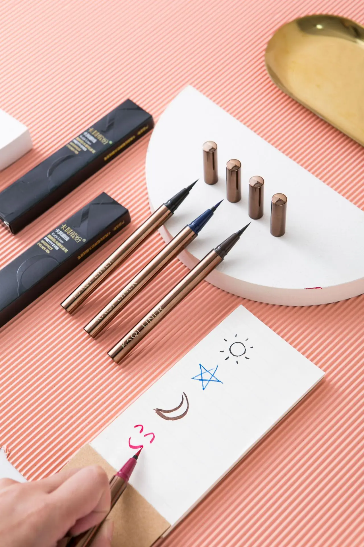 Начиная как можно ближе к ресницам, нарисуйте линию, начиная с внутреннего угла век и направляясь к внешнему углу. Пожалуйста, Зафиксируйте крышку подводки для глаз после каждого использования.