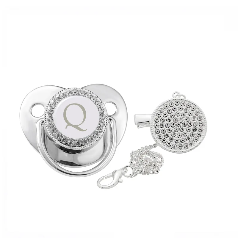 Зажим для соски для новорожденных, серебряная цепочка, блестящий силиконовый держатель для соски для младенцев, пустышка для сосков, манекен для детского душа, подарки