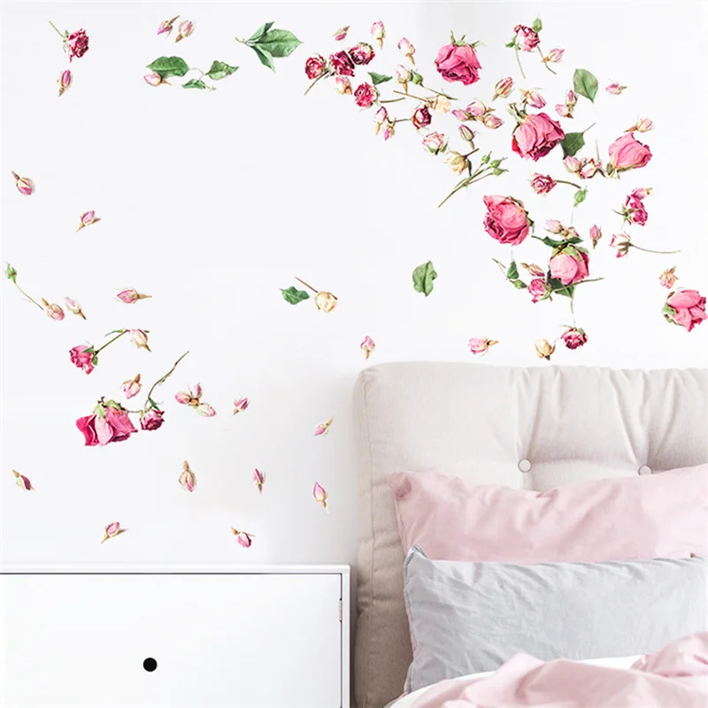 Красивые летающие розы настенные стикеры художественные наклейки для спальни гостиной фон декоративные обои домашняя роспись цветы стикер s