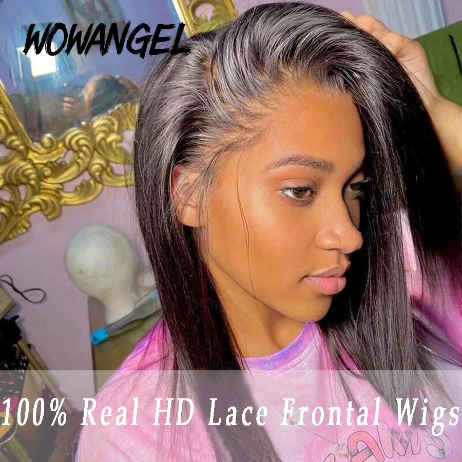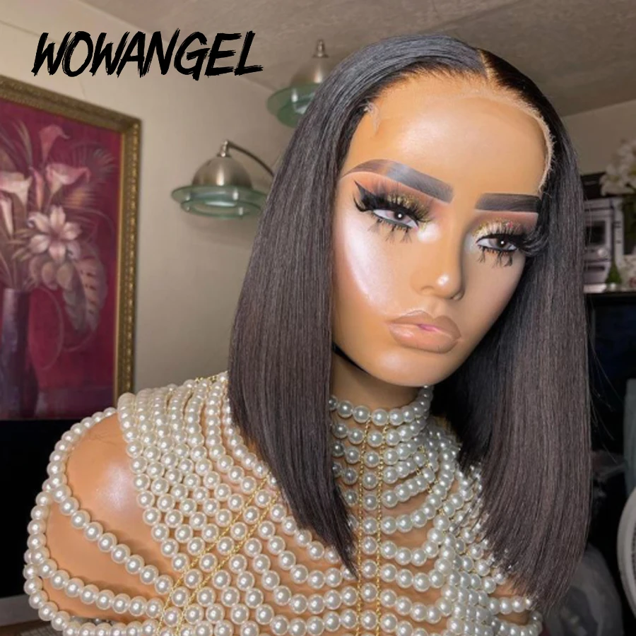 13x4 HD парик шнурка Короткие прямые синтетические волосы парик Полный фронтальной прозрачные кружевные парики из натуральных волос для черный Для женщин предварительно вырезанные холодного отжима