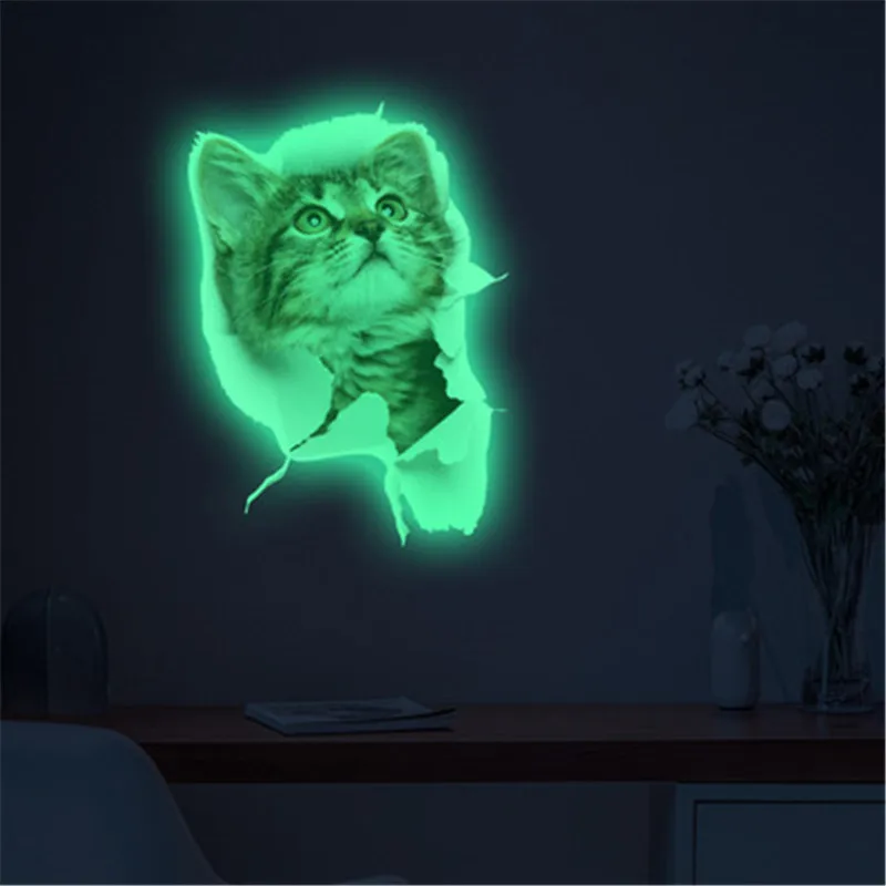 Светящаяся кошка светится в темноте наклейка на стену s для детской комнаты домашний декор детская спальня мультяшная животное флуоресцентная кошка Туалетная наклейка