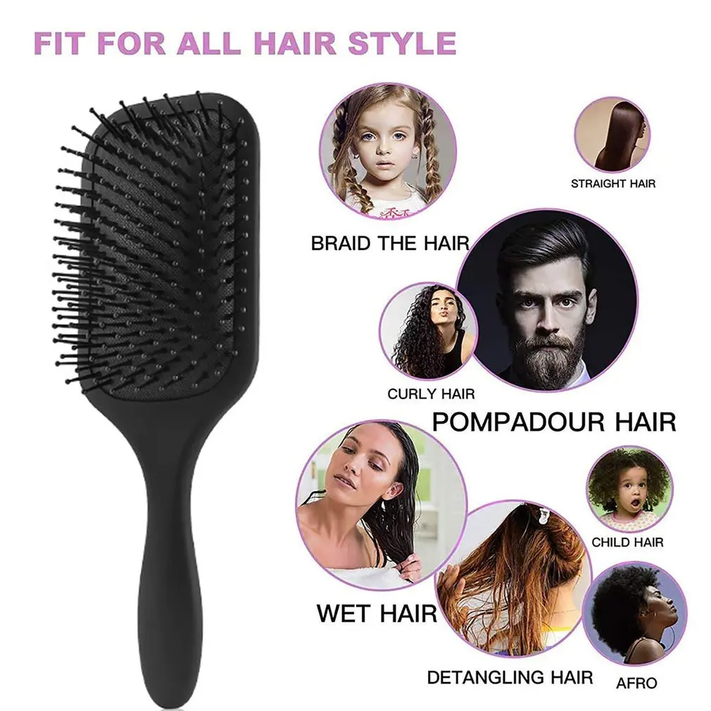2. Безболезненные и гладкие: безболезненные Мягкие пластиковые щетинки, которые массируют кожу головы и увеличивают кровообращение, что может помочь увеличить рост волос. Он также разглаживает слой кутикулы, делая ваши волосы сияющими! Лучше всего удалять узлы и запутывать влажные или сухие волосы.