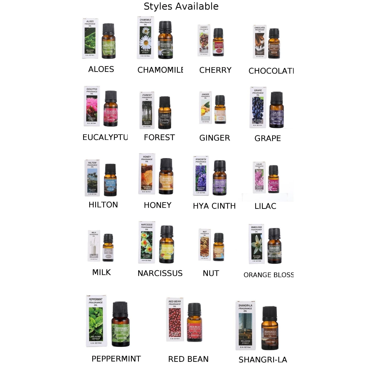 Тип: алоэ, ромашка, вишня, эвкалипт, лес, имбирь, виноград, Хилтон, мед, Хиа цинт, сирень, Нарцисс, орех, апельсин, мята, красная фасоль, SHANGRI-LA, шоколадные конфеты, молоко