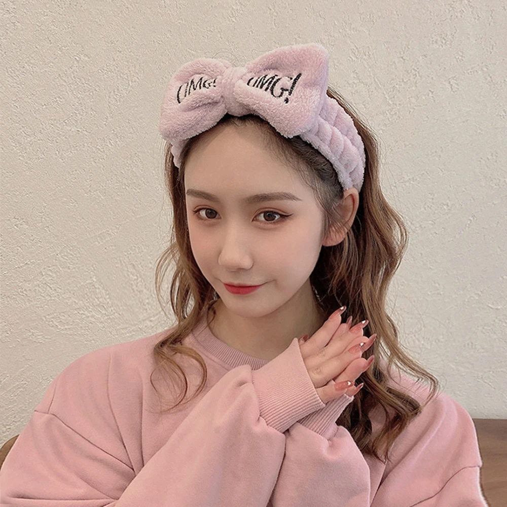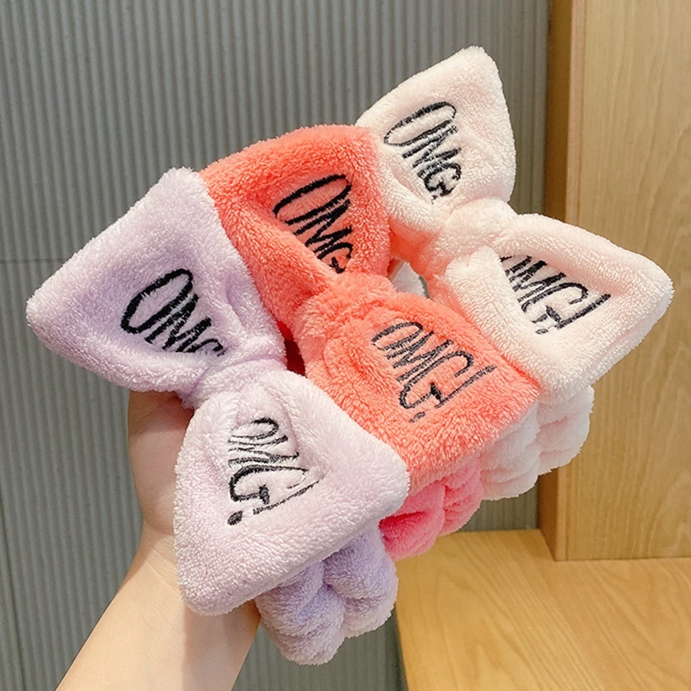 2022 Новый OMG письмо коралловый флис мыть лицо ободок с бантиком для женщин девушек держатели головных уборов резинки для волос аксессуары для волос в виде тюрбана