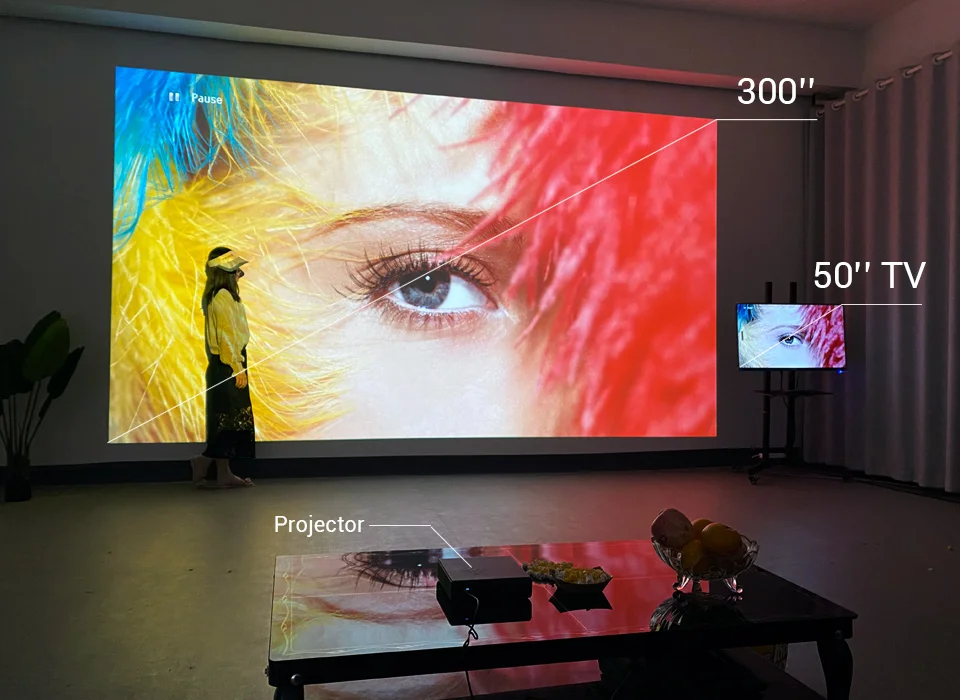 Макс. 300 дюймов, в 16 раз больше 70 дюймов ТВ