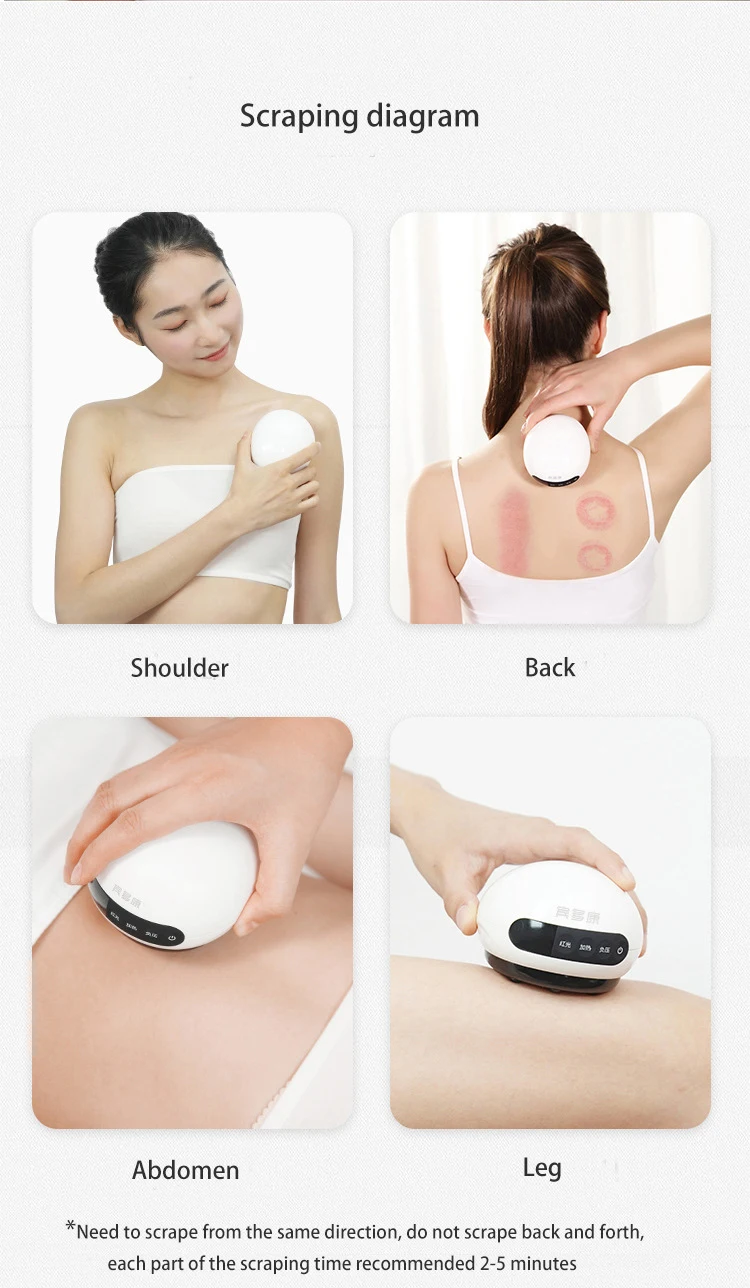 Соскабливание полезно для восстановления нормальной физиологической функции человеческого организма, может регулировать нервный рефлекс, усиливает циркуляцию крови и лимфы, улучшает метаболизм тканей, И достичь эффекта активации крови и удаления застоя крови, стимулируя qi и снимая боль, устраняя отеки и разрешения узлов. Он может регулировать сжатие и расслабление мышц, регулировать давление между тканями, способствует циркуляции крови вокруг соскабливающих тканей, увеличивает кровоток тканей, таким образом, играют роль содействия кровообращению и удалению застоя крови.