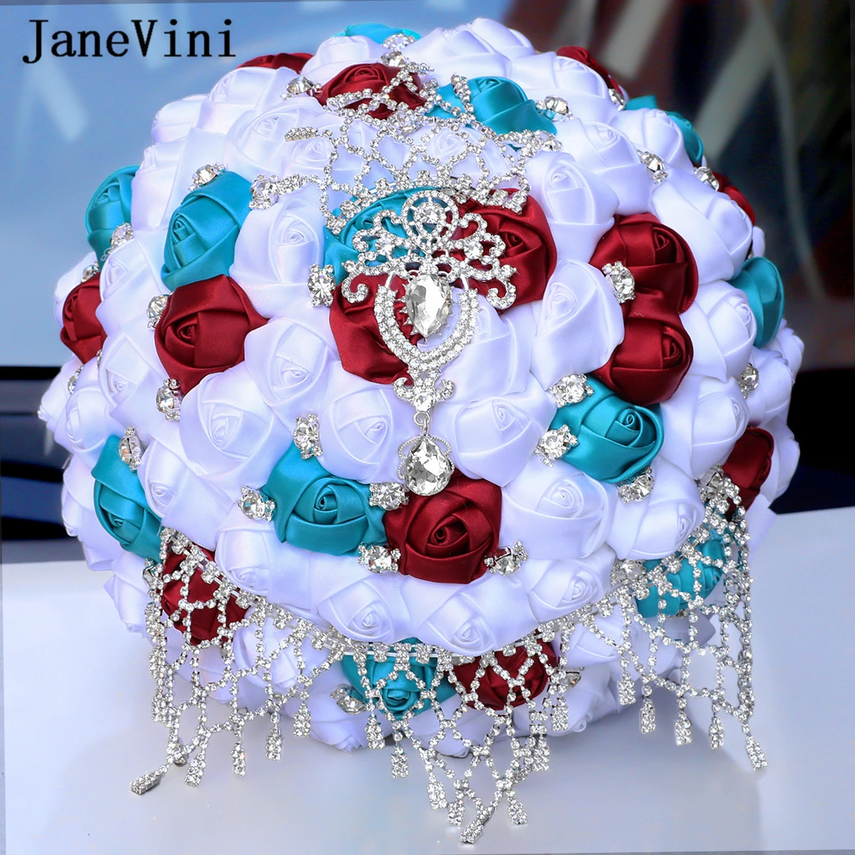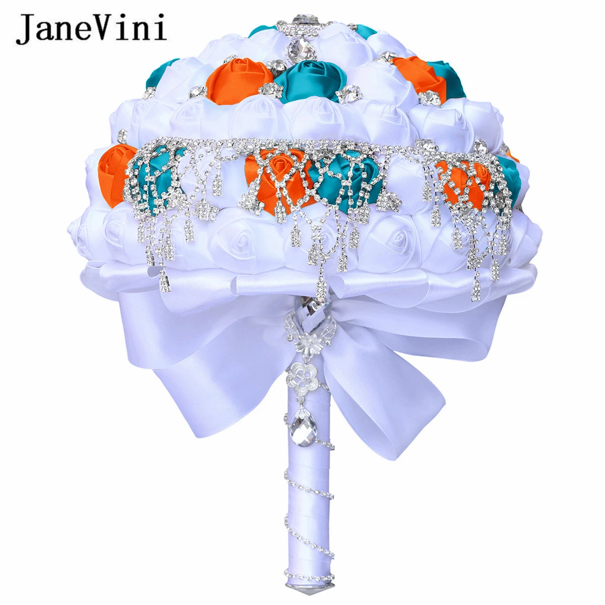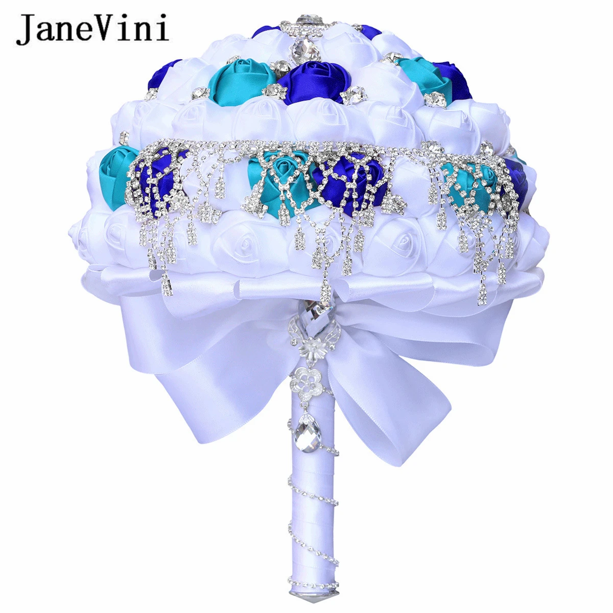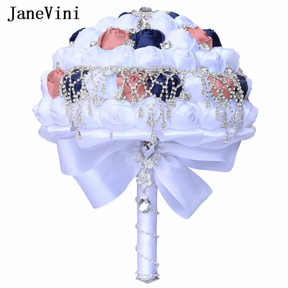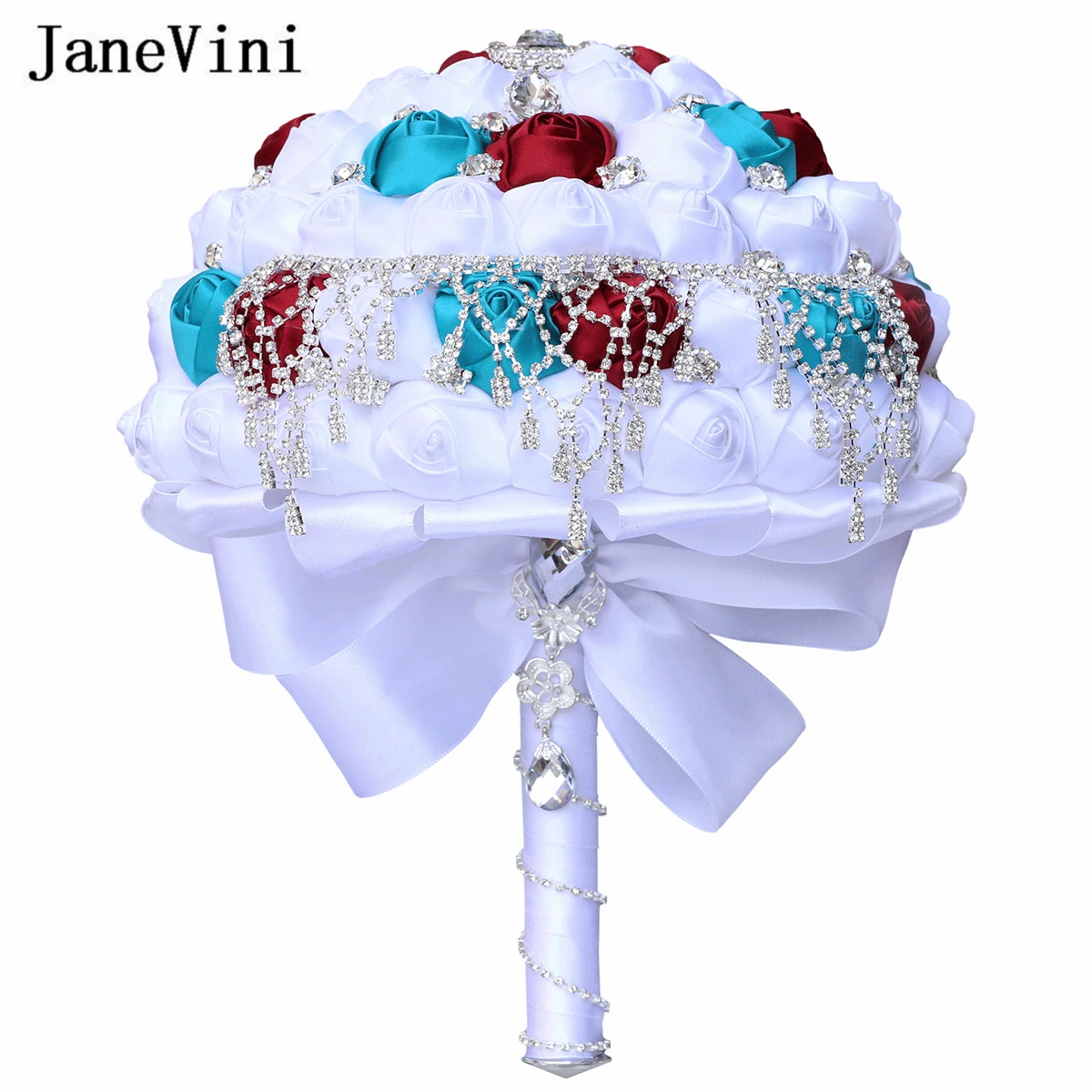 JaneVini Vintage Wedding Bridal Bouquets Luxury Crystal Artificial Satin Roses Brides Holding Flowers Beaded Sparkle Customized