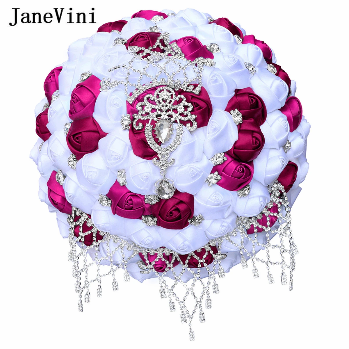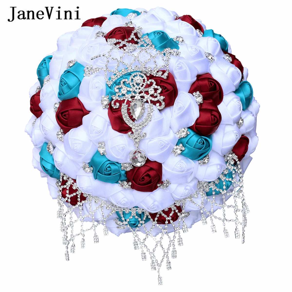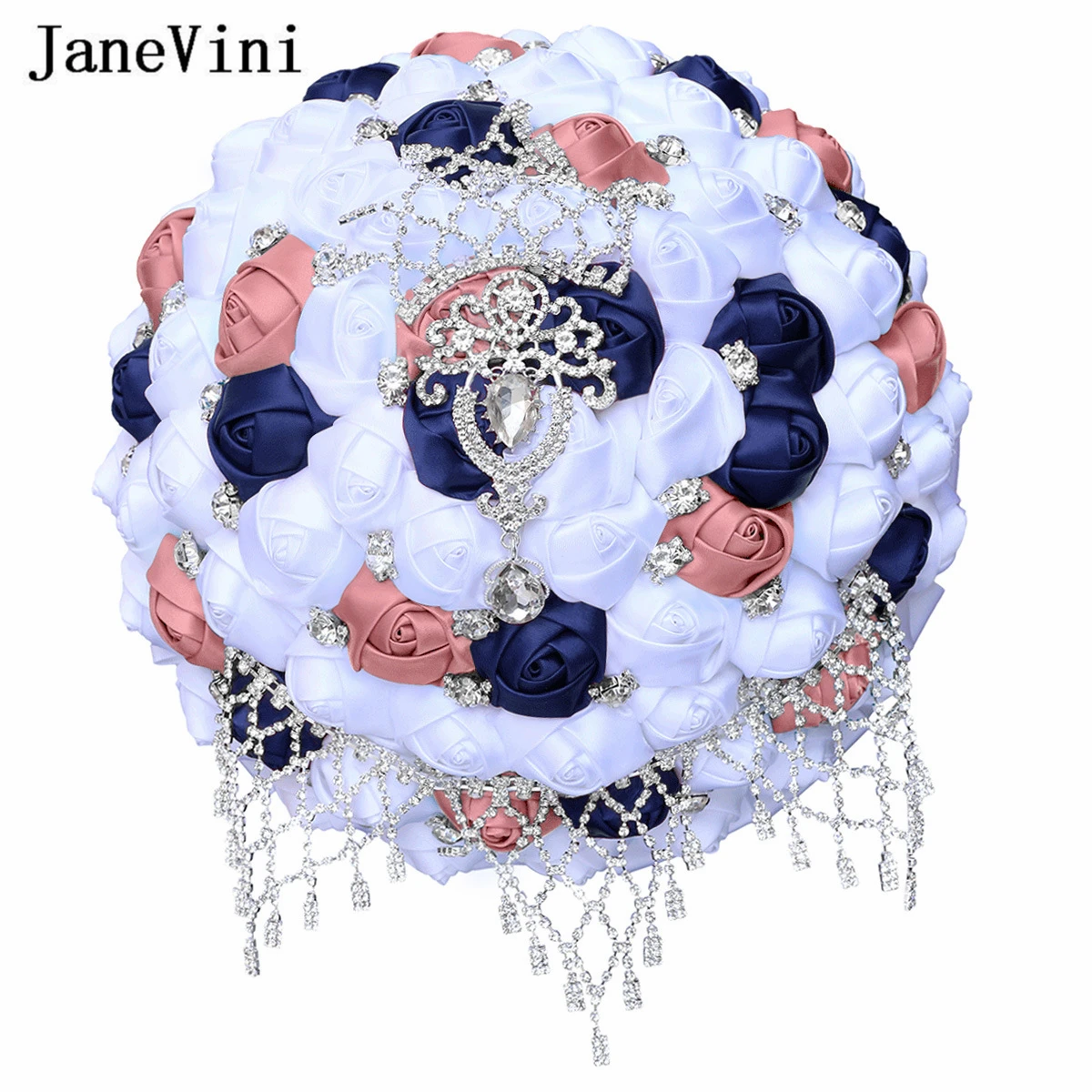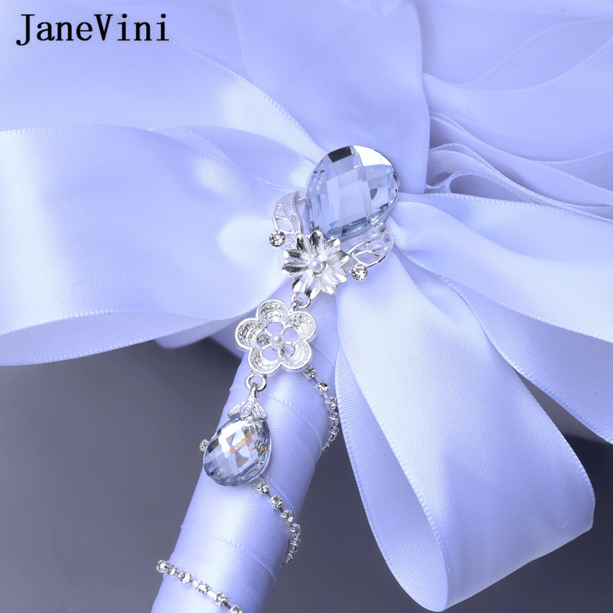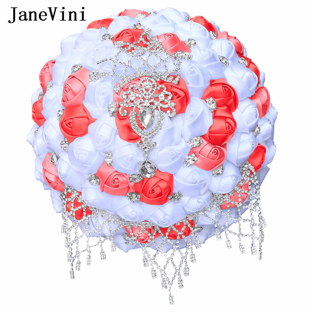 JaneVini Vintage Wedding Bridal Bouquets Luxury Crystal Artificial Satin Roses Brides Holding Flowers Beaded Sparkle Customized