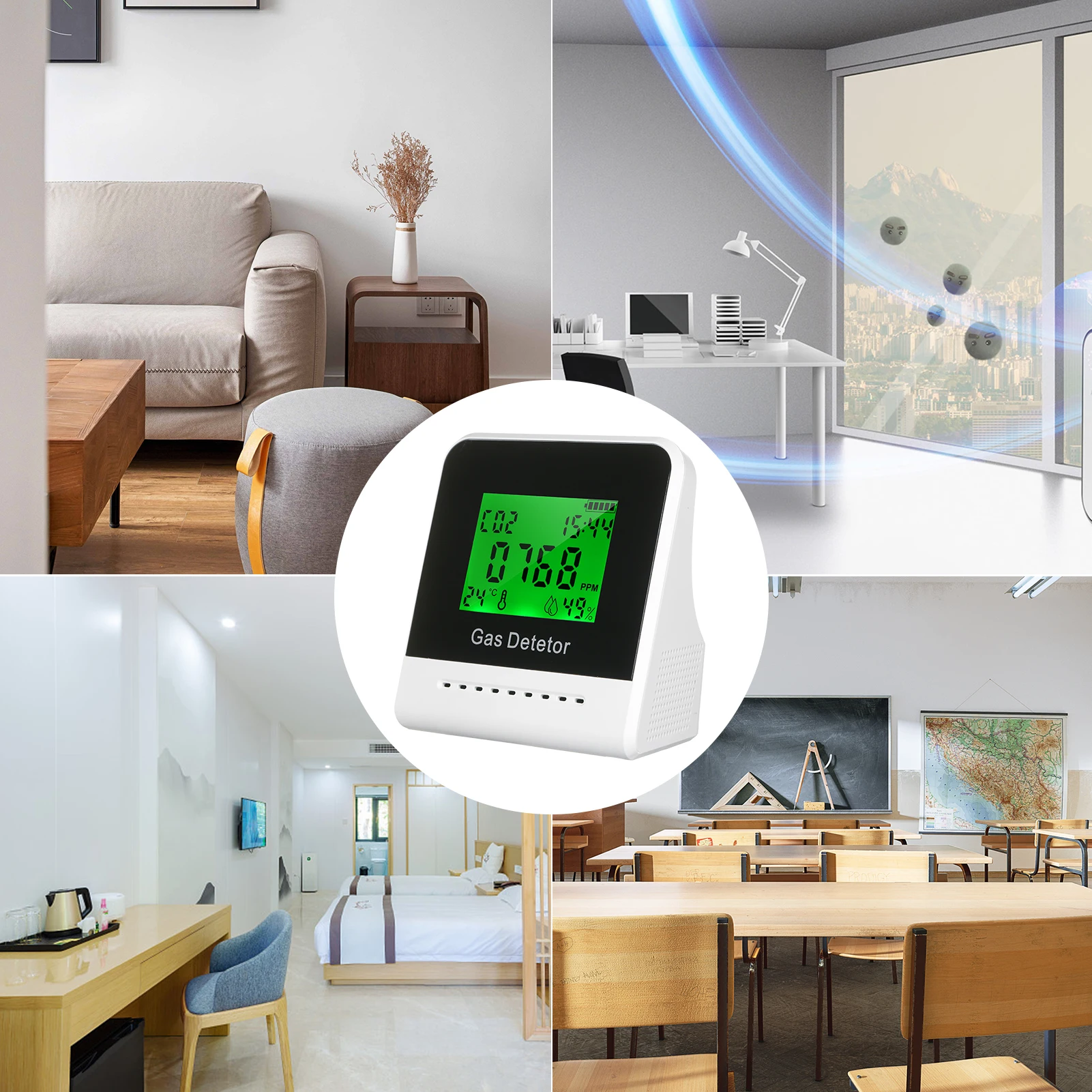 Монитор качества воздуха: тестер углекислого газа может обнаруживать концентрацию углекислого газа в воздухе, его можно широко использовать в домашних условиях, классе, гостиничном зале, квартире, офисе, тренажерном зале и т. д.