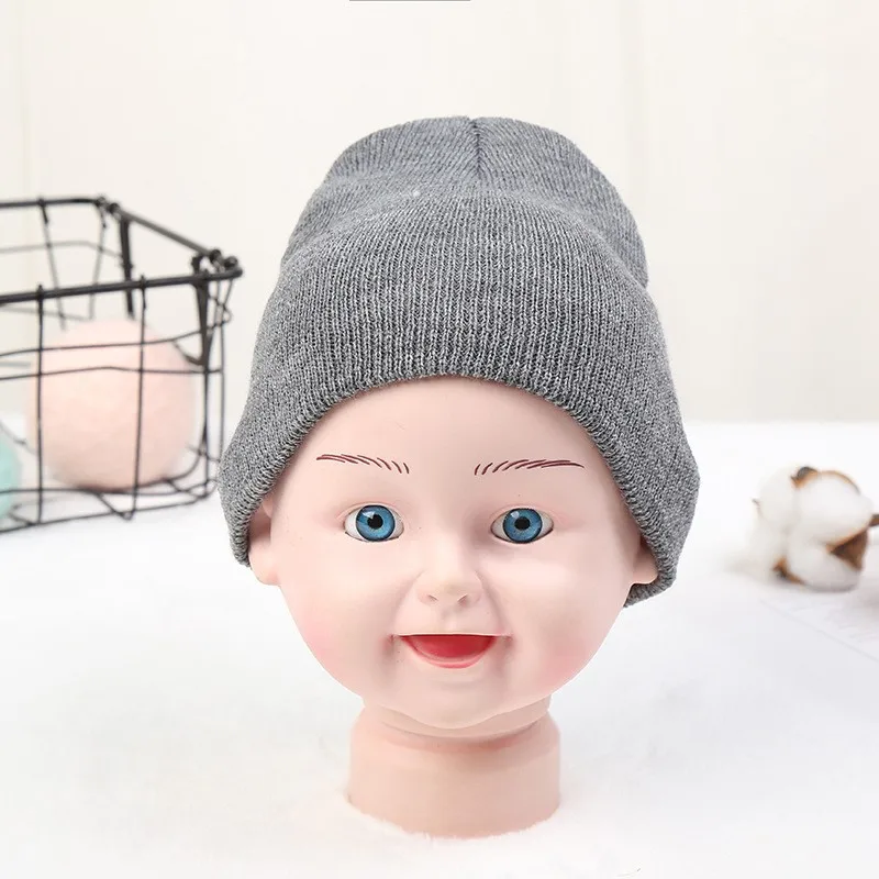 Лидер продаж, одноцветная вязаная детская шапочка с логотипом на заказ, шапка для маленьких мальчиков и девочек, теплая детская шапка на осень и зиму