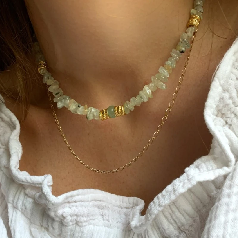 2022 New Irregular Green Stone Necklace Creative Trendy Gold-color Accessories Embellishment For Man Women Natural Stone Collar