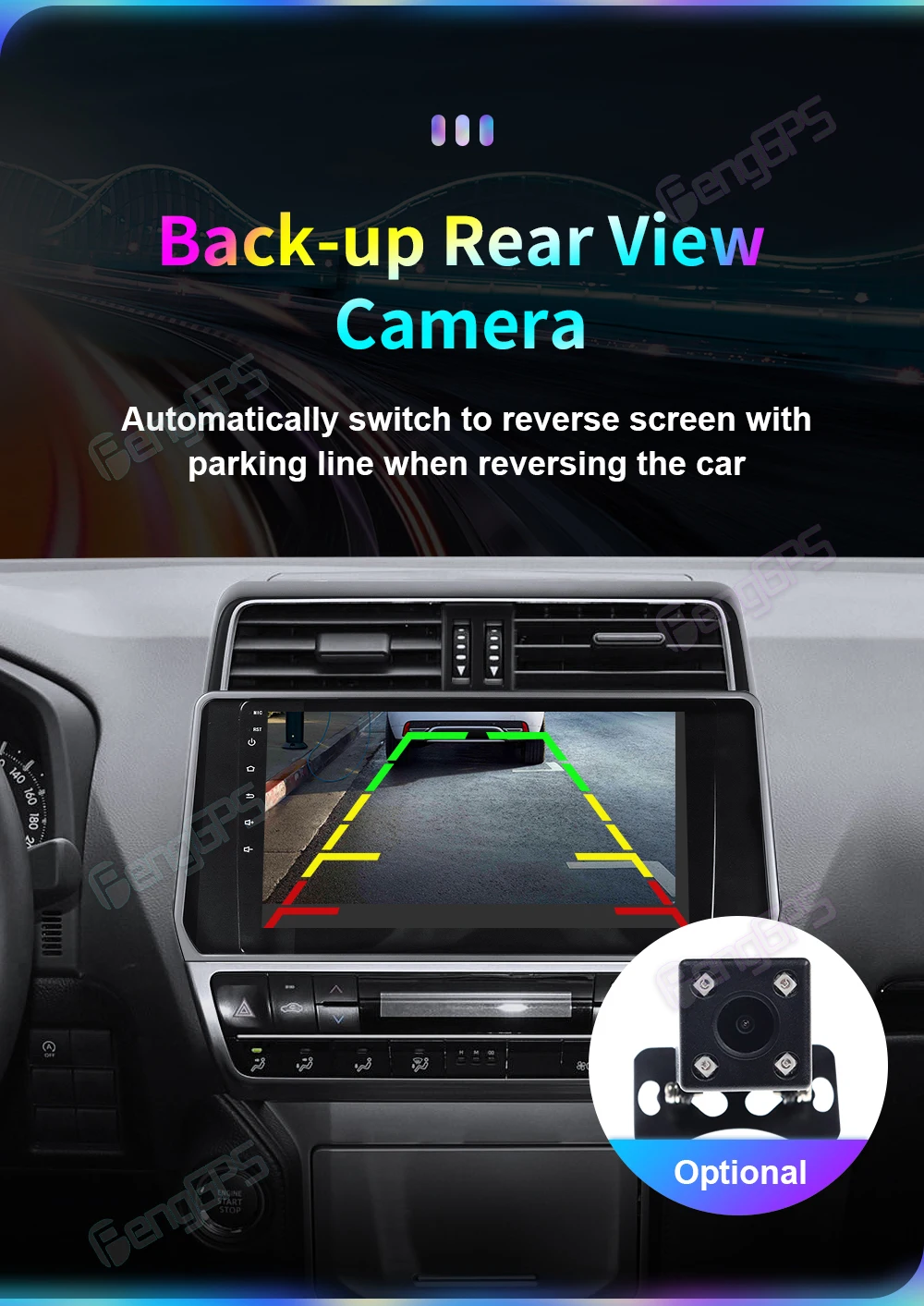 1. Поддержка камеры заднего вида: автоматическая работа при реверсе, может отображать обратную дорожку.