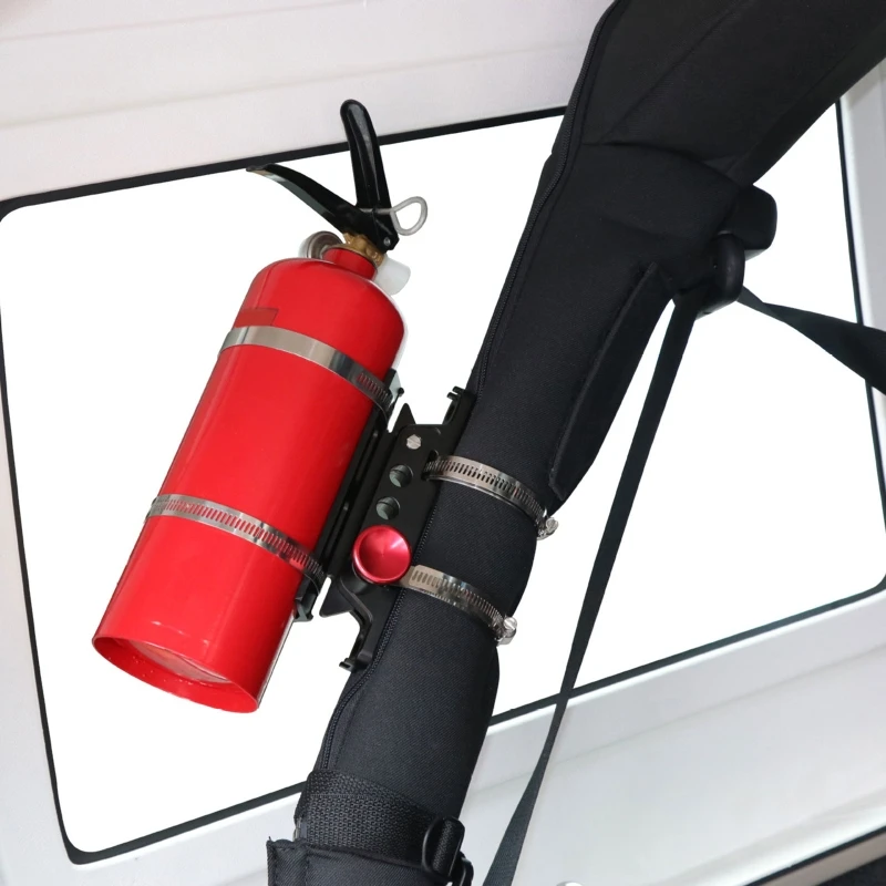 Крепко держите огнетушитель в безопасности на неровной дороге. Он может использоваться в качестве держателя огнетушителя и держателя для бутылок с водой.