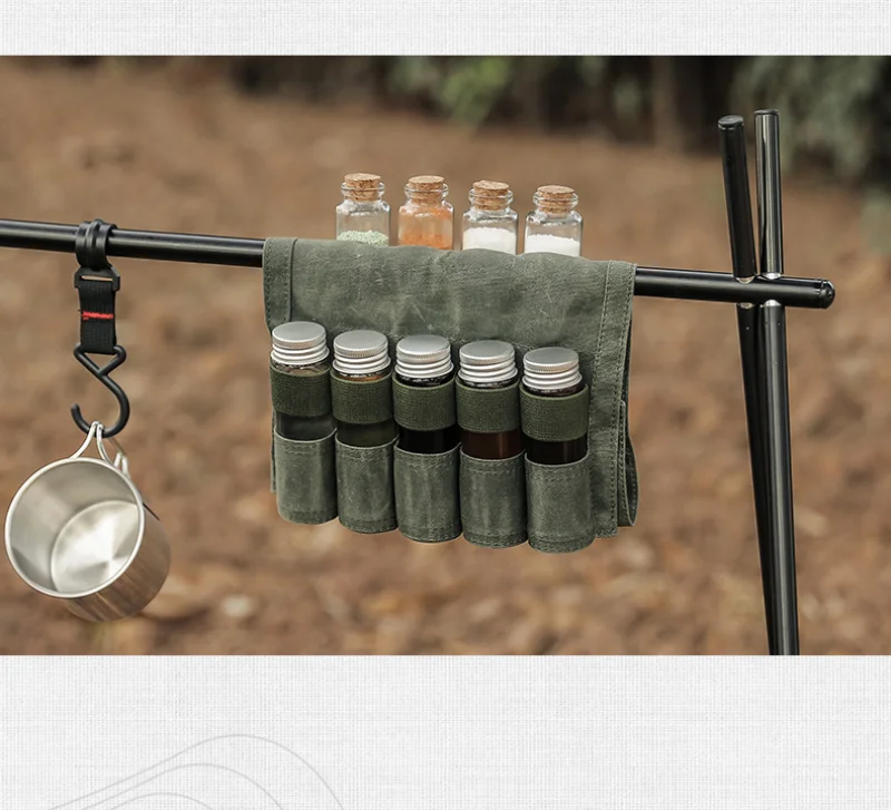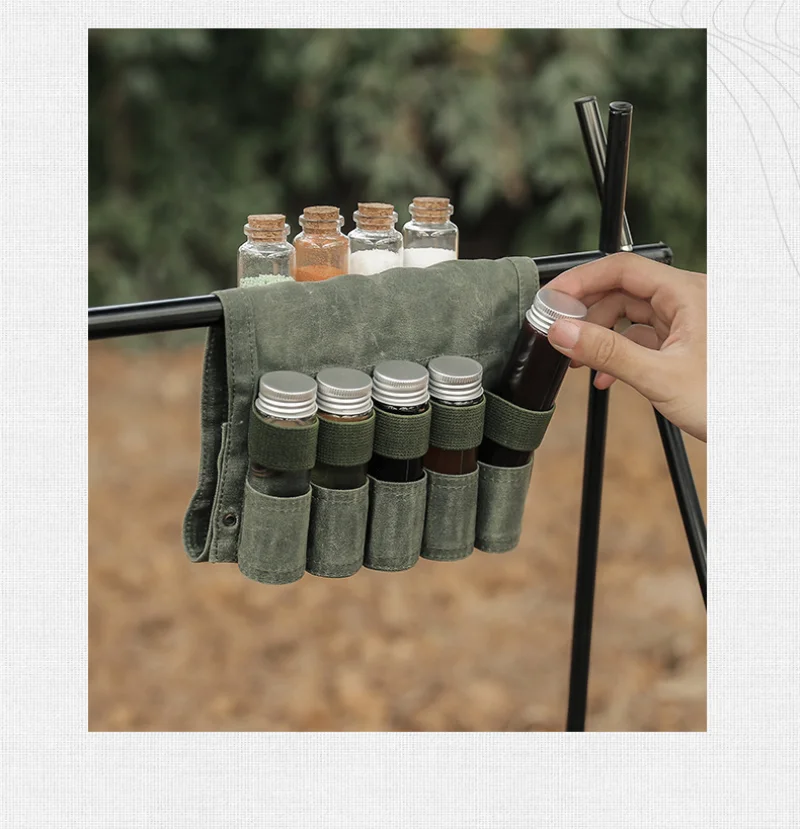 Открытый набор бутылок для специй портативный складной воск Холст водонепроницаемый большой емкости Кемпинг Туризм бушкрафт Пикник барбекю приправа Сумка