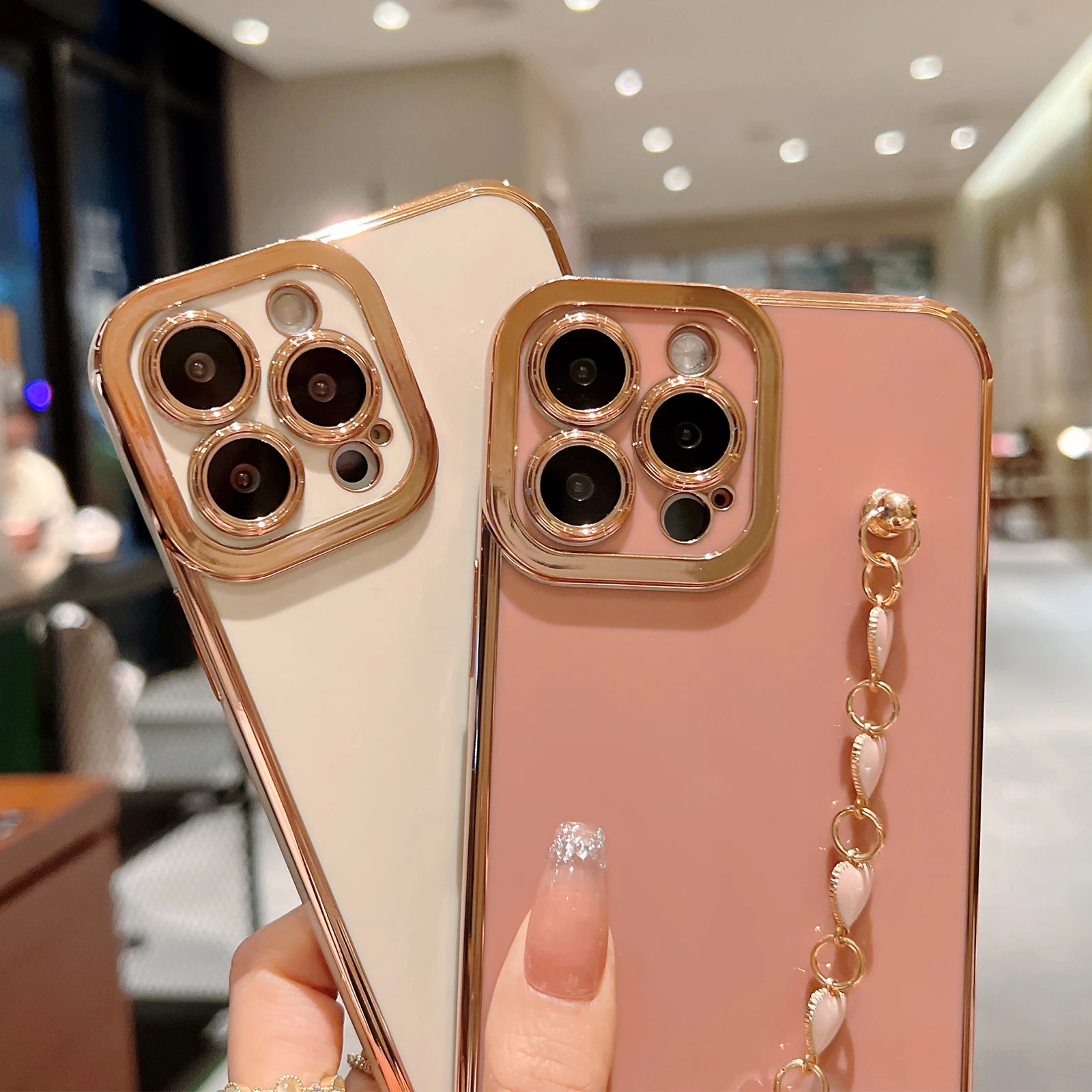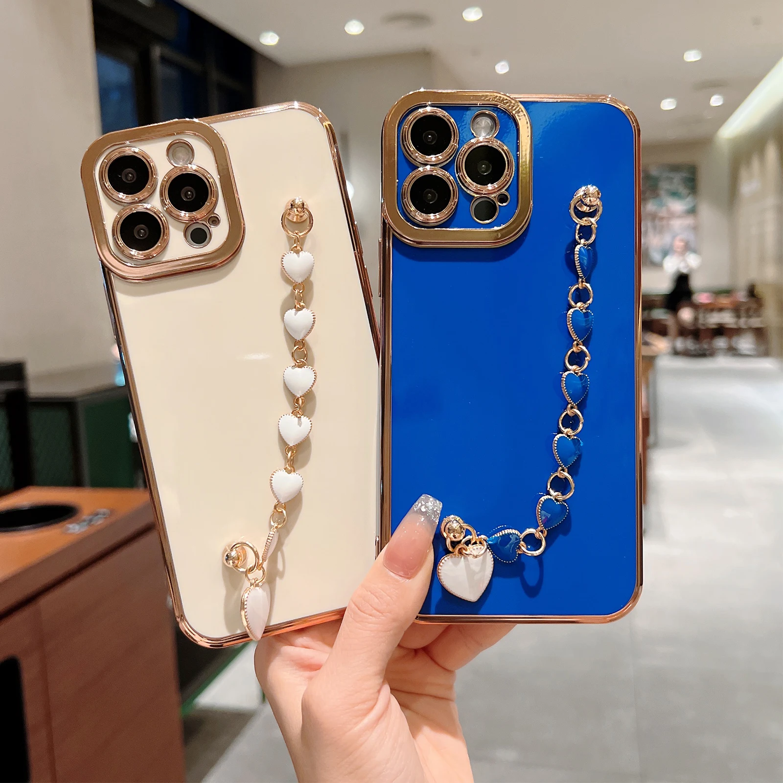 Чехол для телефона с гальваническим покрытием для iPhone 13 Pro 11 12 Pro Max XS Max X XR 7 8 Plus, мягкий чехол из ТПУ с цепочкой в виде сердца