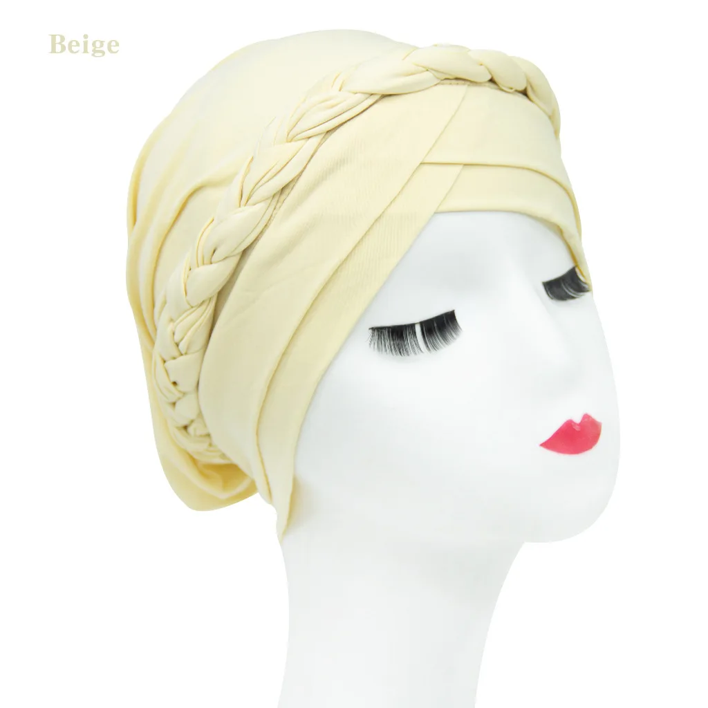 Оптовая продажа мусульманских женщин коса тюрбан шляпы головной убор аксессуары для волос шапочка при химиотерапии головной убор