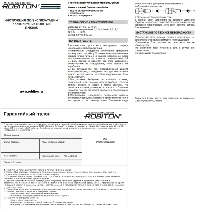 Description robiton sn500sThese power supplies are with stable voltage. The voltage switch is on the back of the power supply. This avoids accidental voltage changes when using the power supply.