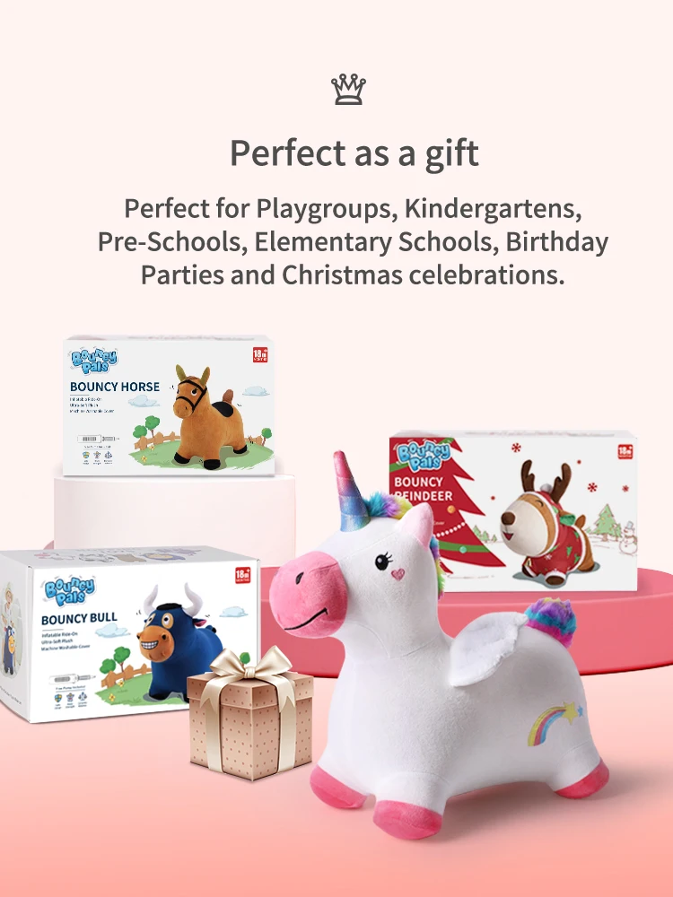 IPlay, iLearn надувные приятели Прыгающая лошадь плюш, открытый n Крытый ездить на животных игрушки, надувной Хоппер, активность езда прыжки лошадь подарок на день рождения для 18 месяцев От 2 до 4 лет для детей дошкольников девочек W/насос