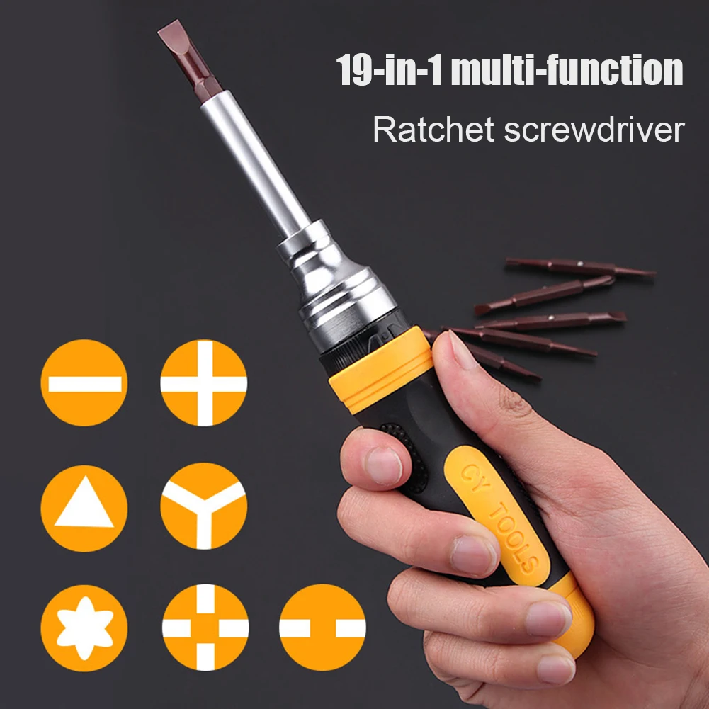 Detachable 19 in 1 Two-Way Ratchet Screwdriver Anti Slip Handle Multi-Purpose Screw Driver Replaceable Household Toy Fan Repair Tool