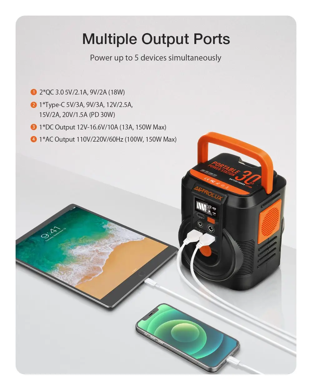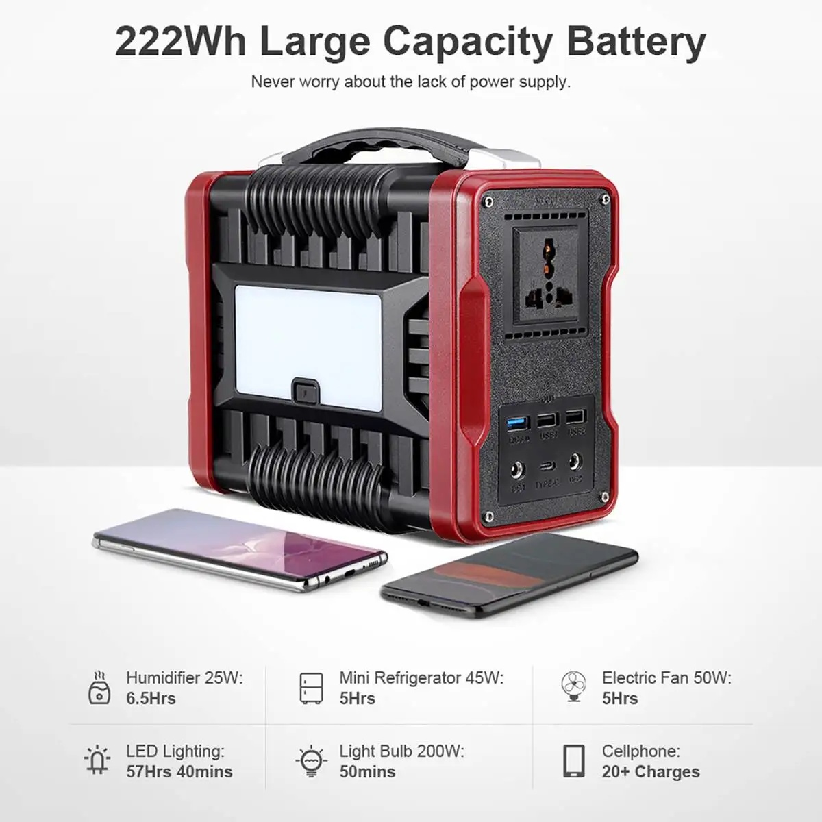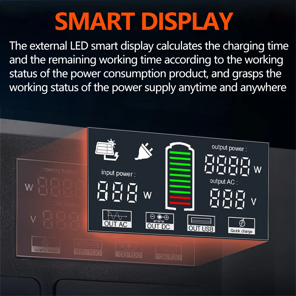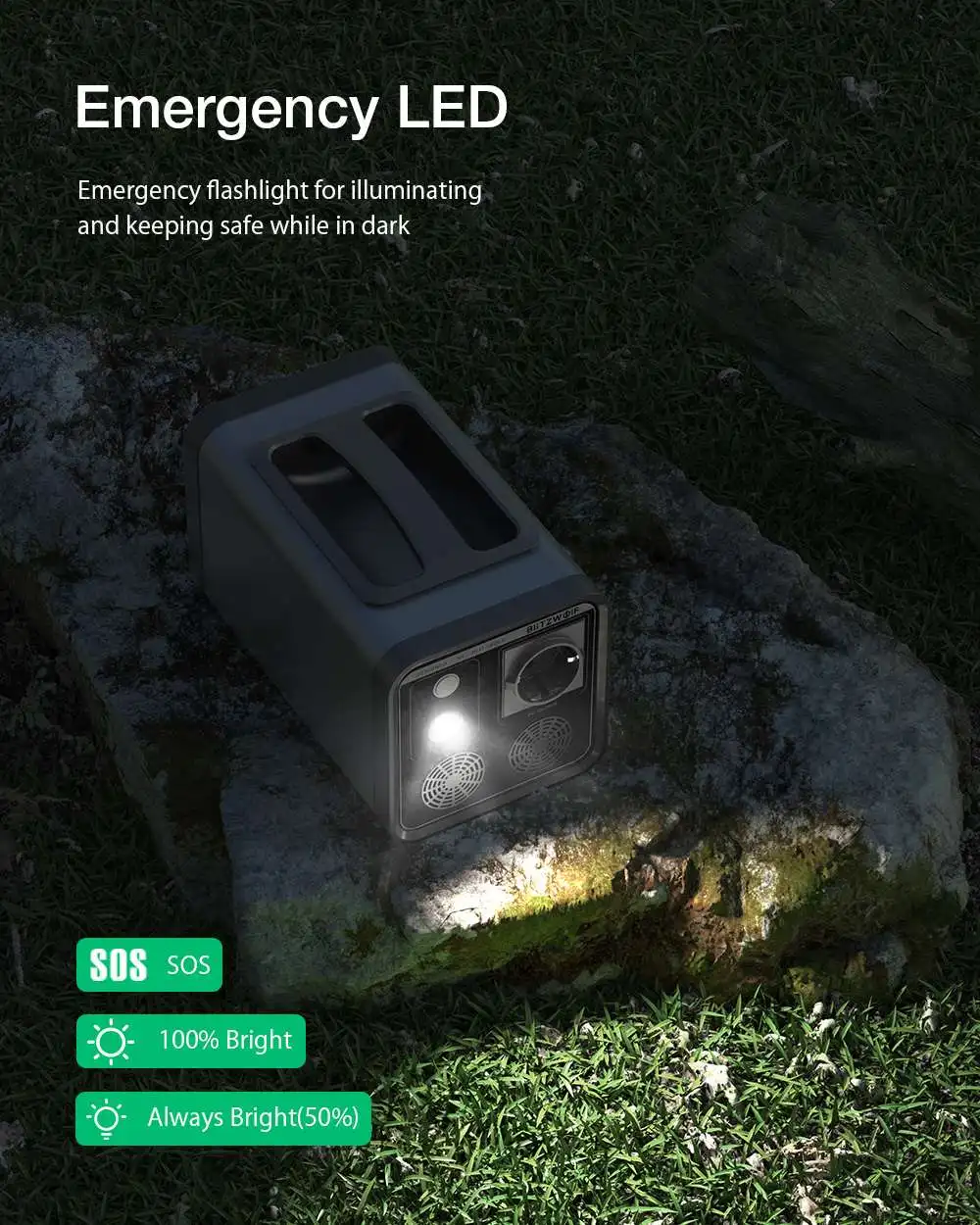 Спецификация:(200 Вт)Цифровой дисплей: светодиодный экранЕмкость батареи: встроенный литий-ионный аккумулятор222WH 11,1 V/20AH (3,7 V 60000MAH)Входные характеристики: 15 В/3 А постоянного тока, около 7-8 чСпецифический Солнечный Вход: MPPT, 13V ~ 25V / 3.0A MAXВыход переменного тока: модифицированная Синусоидальная волнаСтандарт ЕС: 220-240 ВЧастота: 50/60 ГцНоминальная мощность: 200 ВтПиковая мощность: 320 Вт Выход USB:2 x USB 5V/2.1A Max1 x USB 5-9V/2A (QC 3,0)1 x Type-C 5-9V/2A (QC 3,0 PD 2,0)Выход постоянного тока: 2x9-12,5 V/ 10VA (15A Max) , 120WРежим освещения: светодиодный индикатор высоты 4 Вт/SOS/стробоскопРабочая температура: -10 °C-40 °CРазмер: 213x106x180 ммВес: 2,4 Кг Особенности товара:(300 Вт)Емкость: 300 Вт · чРабочая влажность: RH 75% RHРазмер: 240x139x15 4 мм/9,45x5,5x6,06 дюймовЧистая Вес: ≈ 3,8 кгСодержание: хранение энергии * 1, адаптер * 1, зарядный кабель Type-C * 1, руководство * 1, гарантийный талон * 1 Выход:USB1 QC3.0 DC: 5 В/3A, 9 В/2A, 12 В/1.5A, общая мощность 18 Вт МаксUSB2 QC3.0 DC: 5 В/3A, 9 В/2A, 12 В/1.5AUSB3 DC 5V 2.4AТип C QC3.0 DC 5-20 в (макс. 60 Вт)DC1 12V 10A (всего Выход 12V 10A макс)DC2 12V 10AЗажигалка DC 12V 10AAC 220 В, 50 Гц, выход 300 Вт макс, Синусоидальная волна Вход:DC:DC 12V-32V (макс. 60W)Тип C: 5-20 В постоянного тока (макс. 60 Вт) Рабочая температура:Зарядка: 0 ~ 40 ℃Разряд:-10 ℃ ~ 40 ℃ Спецификация (500 Вт)Емкость аккумулятора: 577.2Wh (эквивалентная емкость 156000mAh)Встроенная технология батареи: 100% оригинальный высококачественный литий-ионный аккумуляторВремя зарядки: DC15V/1A-3AВыход USB: USB1:QC3.0 USB2:5 В/3A 9 В/2AПостоянного тока Выходное напряжение: 9V-12V/15AВыход переменного тока: 200 В ~ 240 В 50 Гц 180 Вт(ВАЖНО: выходное напряжение и частота переменного тока настраиваются в соответствии с различными странами и регионами.)Выходная мощность переменного тока:Номинальная мощность: 500 ВтСветодиодный светильник: 3 Вт Высокий светодиодный свет/SOS/вспышкаИндикатор заряда батареи: светодиодный дисплейРабочая температура:-20 ℃-65 ℃ Особенности товара:(600 Вт)Цвет: серебристый + черныйЕмкость: 156000 мАч (577Wh)Время зарядки: около 6,5 часовОперационной Температура: 14 ℉ ~ 104 ℉Размеры: 286X158X15 0 мм/11,3x6,22x5,9 вФонарик: (4 Вт) общая яркость и высокая яркость и медленная мигание и быстрая миганиеАдаптер: 22 в/5A(110 Вт)Чистая Вес: 6,6 кгПрименение: Кемпинг, домашнее резервное копирование, отдых Выход переменного тока:Номинальное напряжение: 220 В 50 ГцНоминальная мощность: 600 Вт (мгновенная пиковая мощность 1000 Вт) Выход постоянного тока:Выход типа C: PD 60 Вт: 5 В/3A,9 В/3A,12 В/3A,20 в/3AUSB Выход: 5V * 2.4AQC 3.0 Выход: 5 В/3A,9 В/2A,12 В/1.5A 18 Вт МаксDC Выход :( 12 ± 1,5) V * 10A Особенности товара:(1000 Вт)Размер продукта: 319x270x20 7 мм/12,6x10,6x8,15 вВес продукта: около 10,5 кг (вес нетто)Выходное напряжение переменного тока: 110 В/220 ВВыходная мощность переменного тока: 1000 ВтБеспроводная зарядка: 15 ВтЕмкость аккумулятора: 999Wh (1000W 270000mAh)Время работы на одном заряде: более чем 90% для адаптер 8,5 H более 90% для Быстрая Зарядка 2,5 HДиапазон температур для использования: 0 ℃-45 ℃/32 ℉-113 ℉Диапазон температур для хранения: -5 ℃-35 ℃/23 ℉-95 ℉Выход постоянного тока: USB: 5 В/3 А Type-c: 65 Вт QC3.0:18 Вт 12 В/10 А 13,8 В/5AКак зарядить электростанцию
