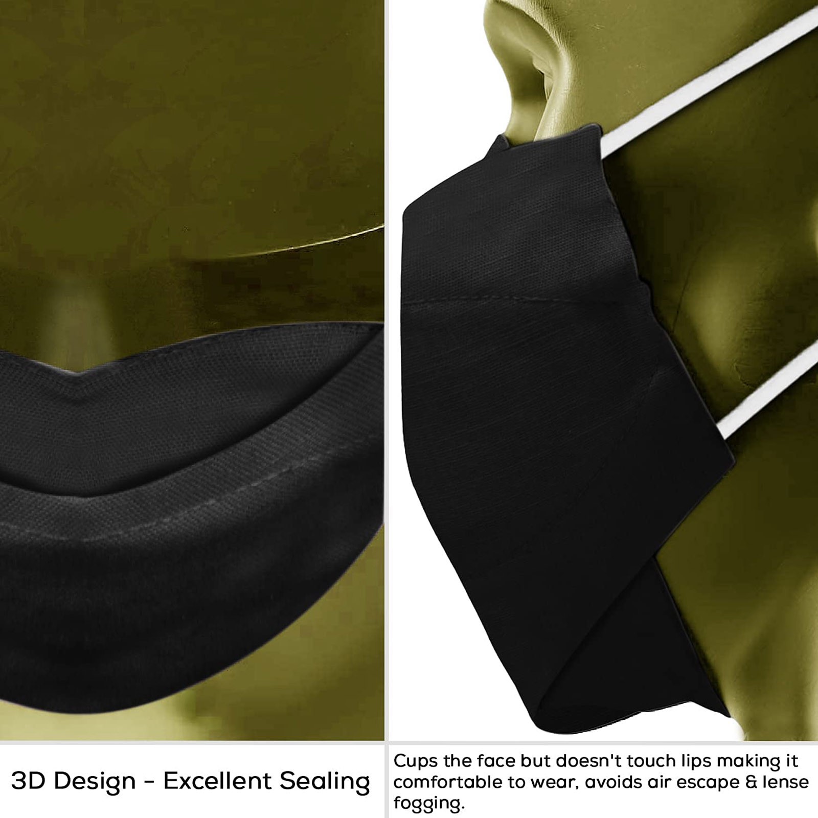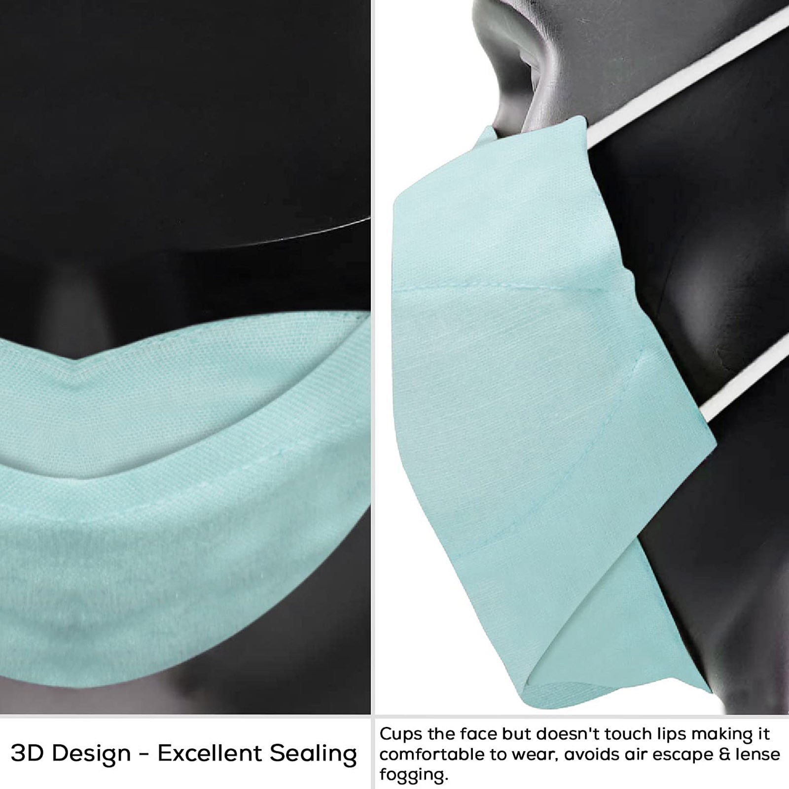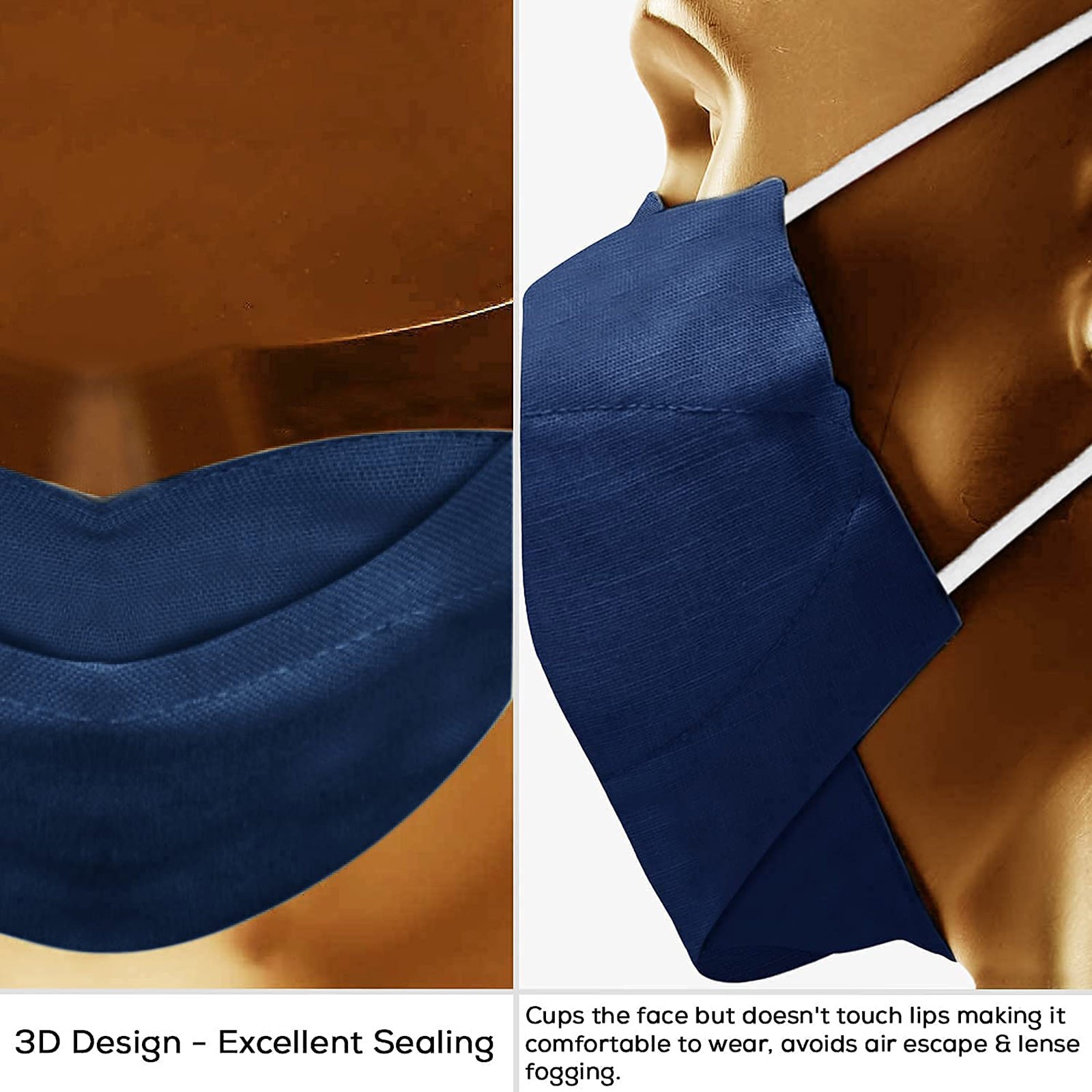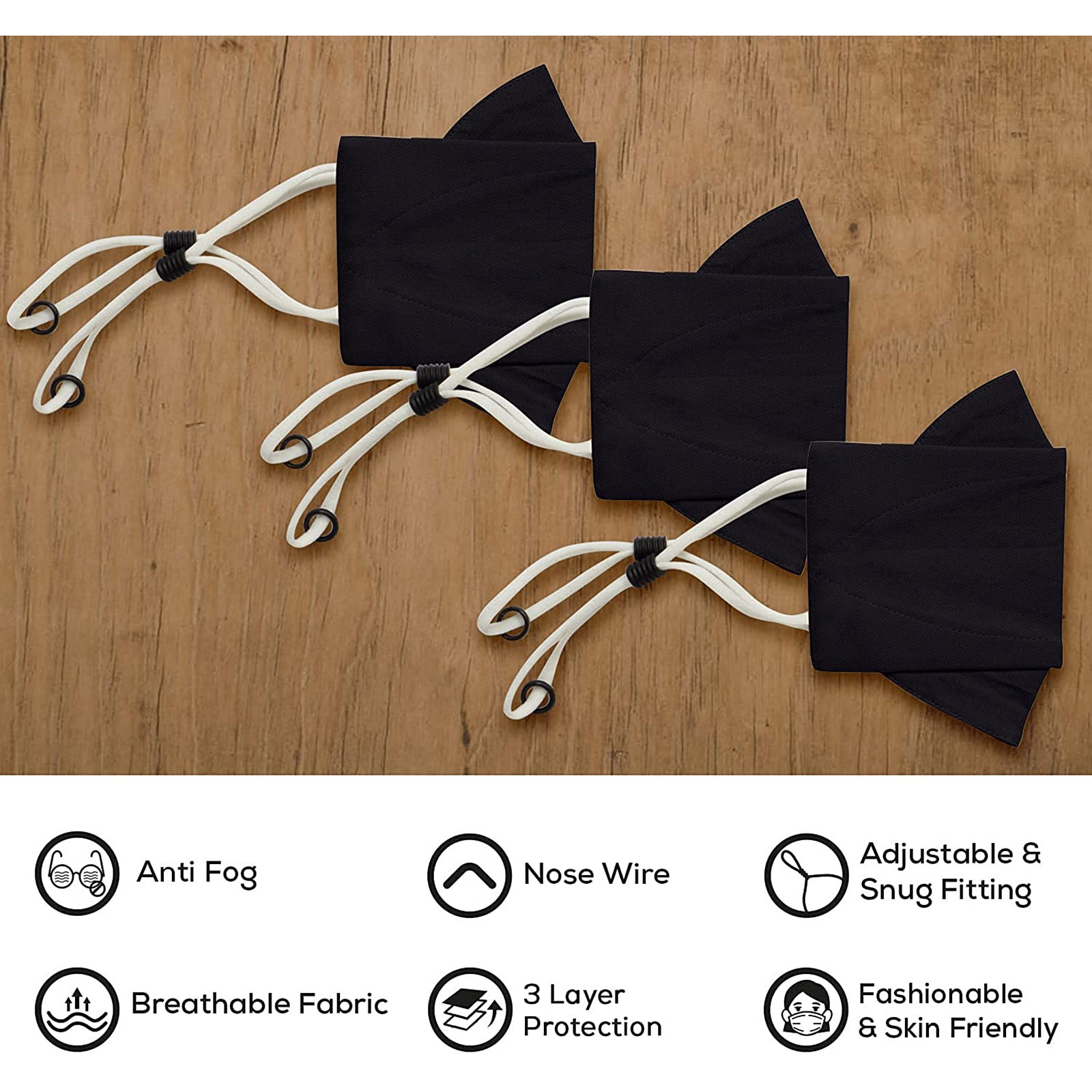 3PC Fogging Cloth Face Mask With Nose Wire & Adjustable Earloops (Pack of 3)
