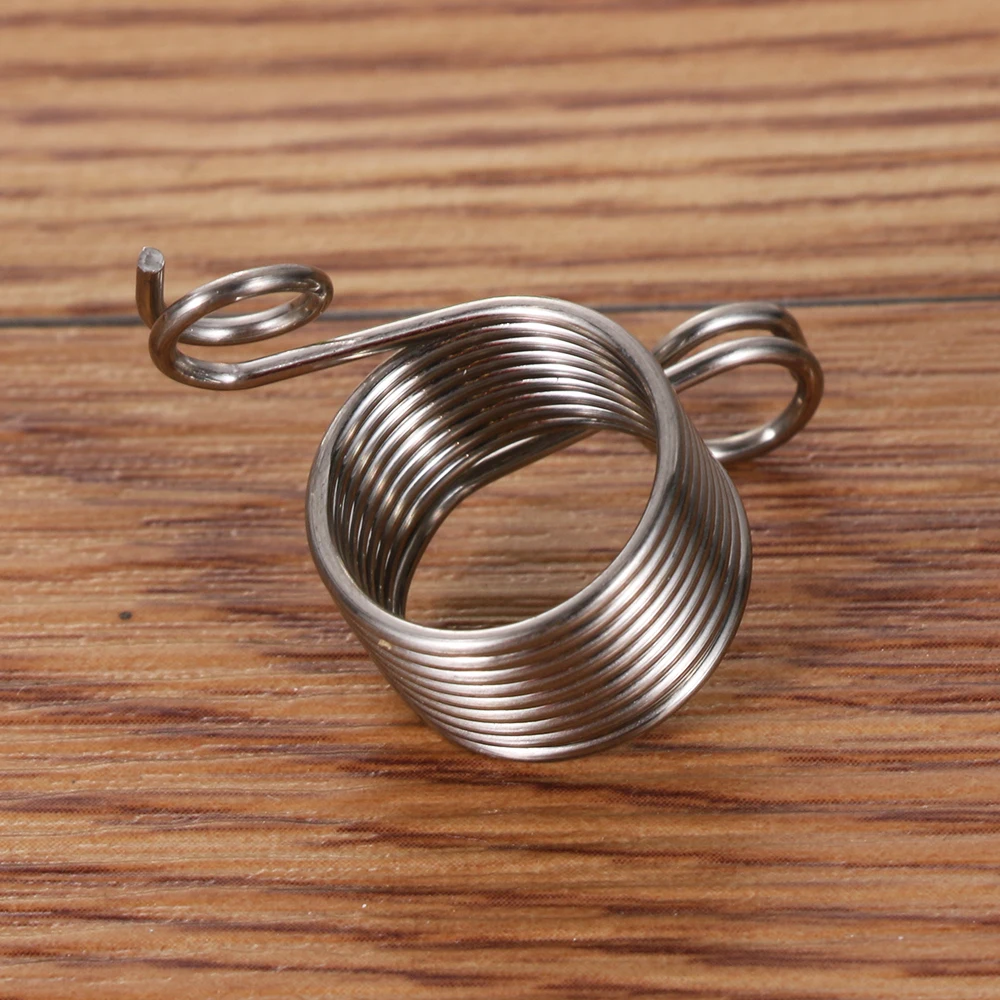Надетая на палец, Проволочная катушка имеет два направляющих пряжи для управления вязанием.