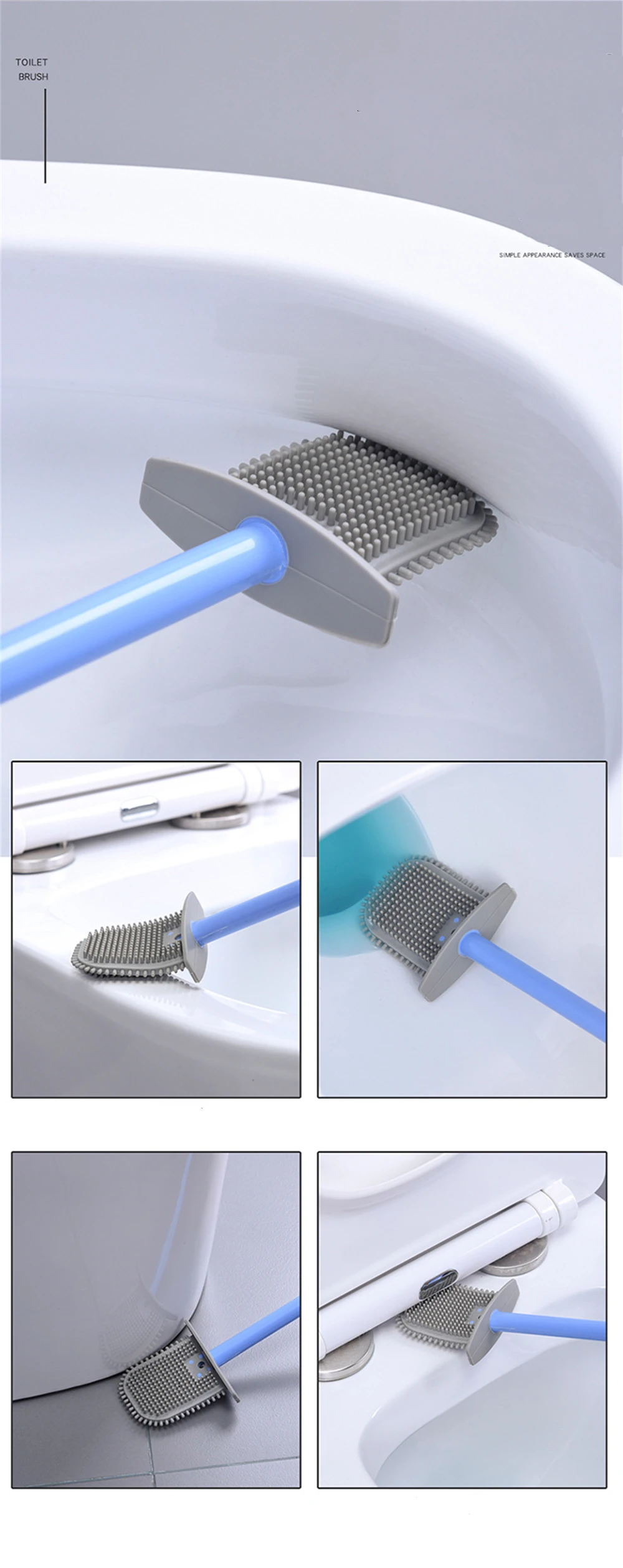 Уникальный дизайн головки щетки изогнут, и каждый угол подходит для туалета, не оставляя слепых пятен. Можно глубоко очистить любой уголок унитаза. Легко чистить углы и темные пазы.