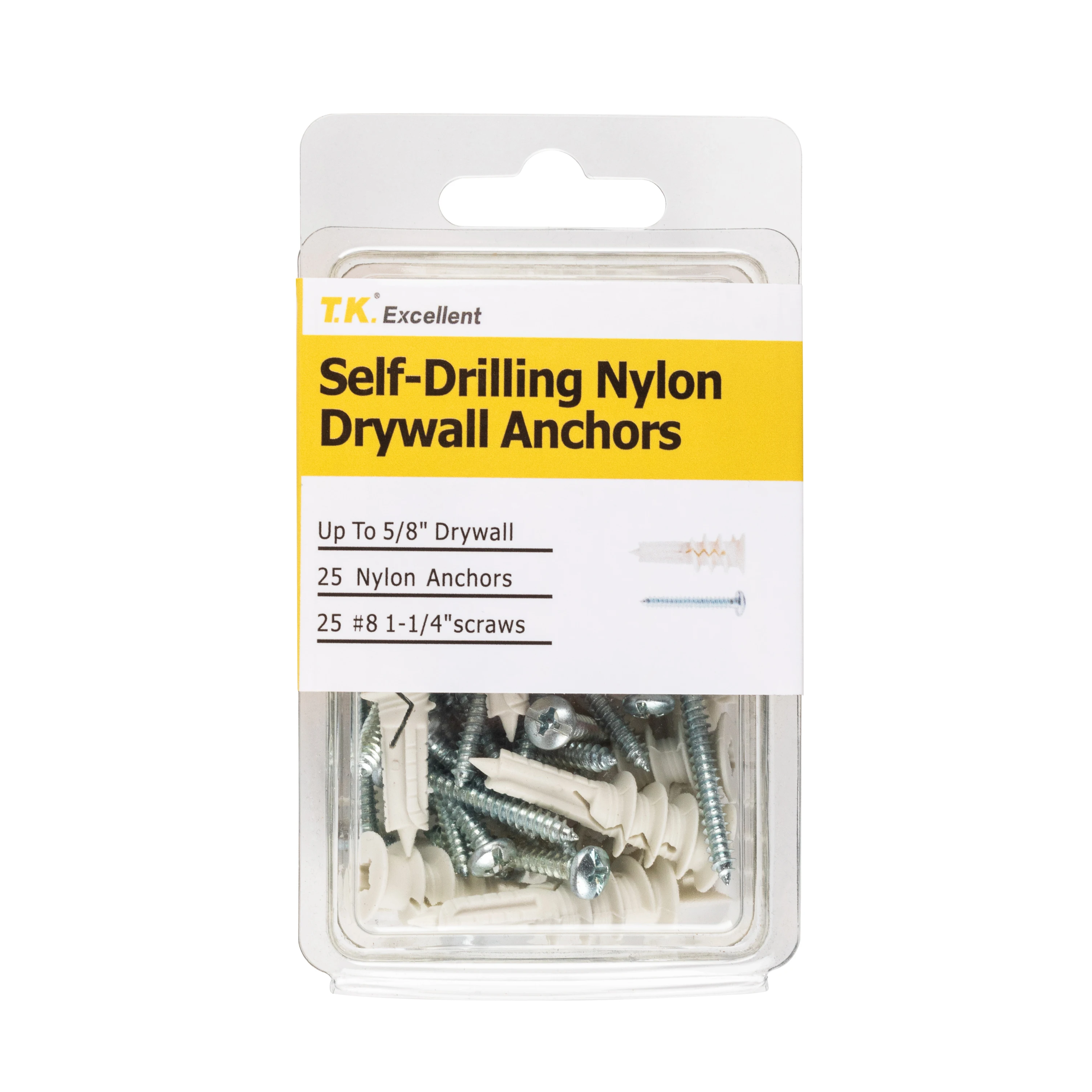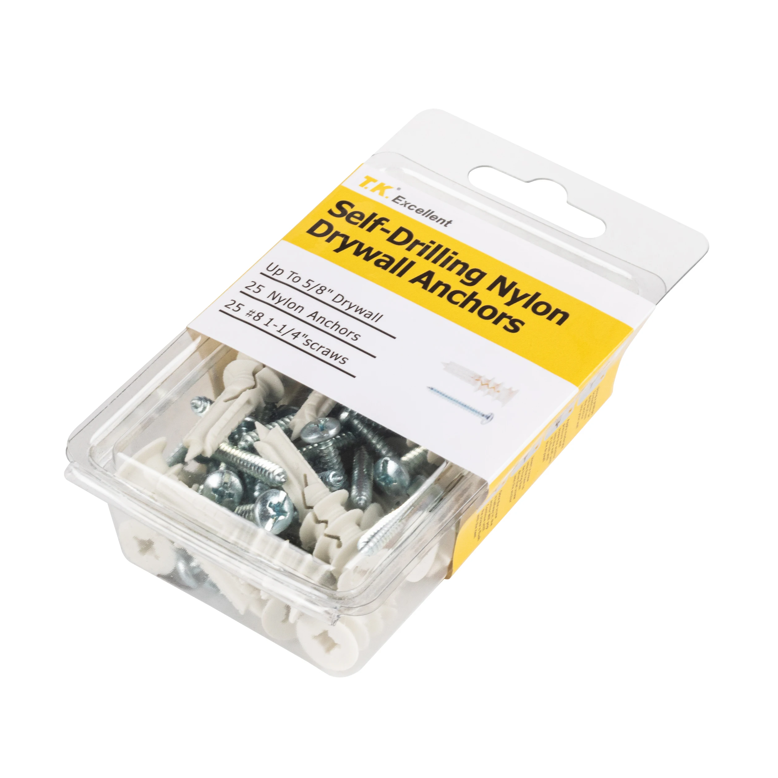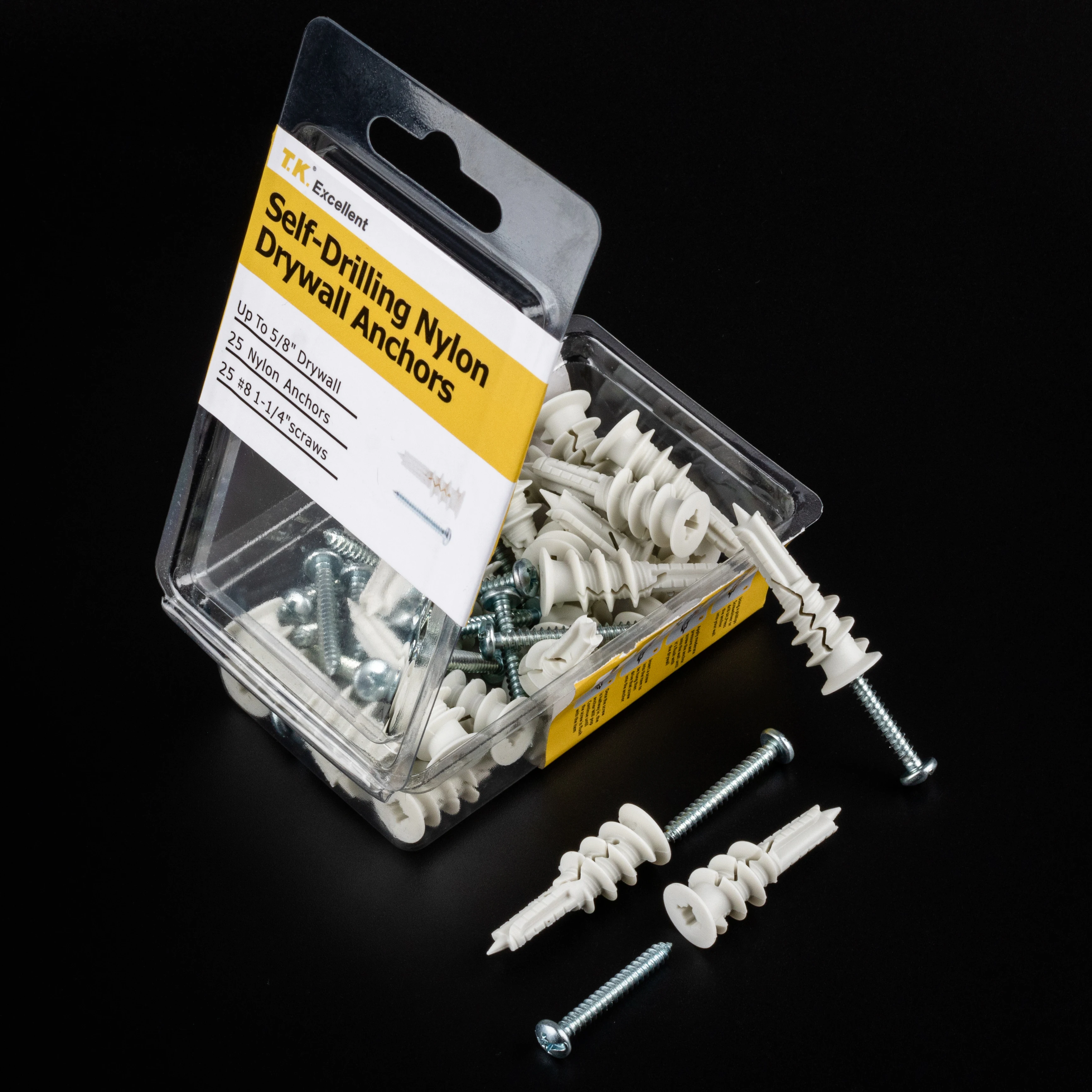 25 наборов самосверлящих гипсокартона пластиковых якорей с винтами