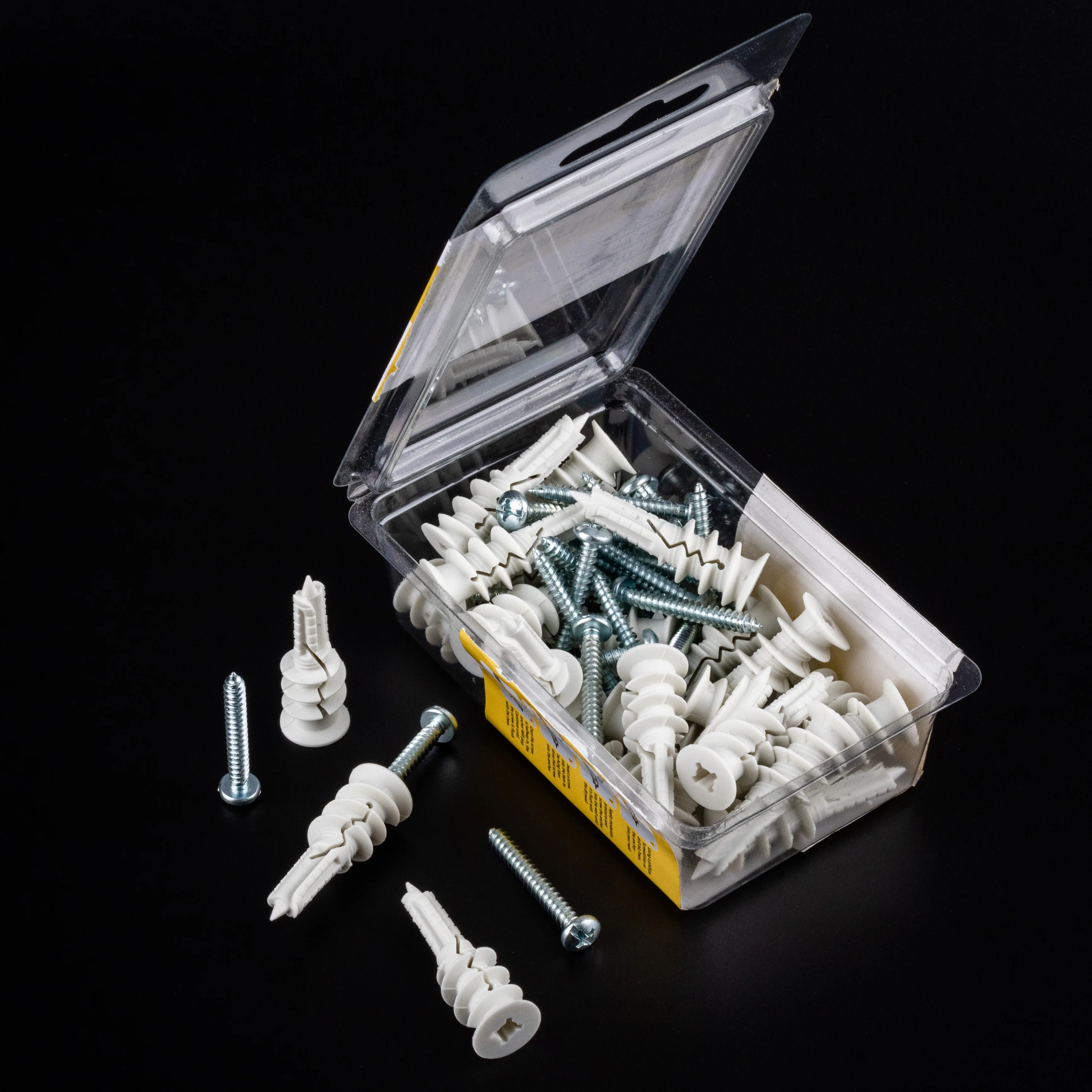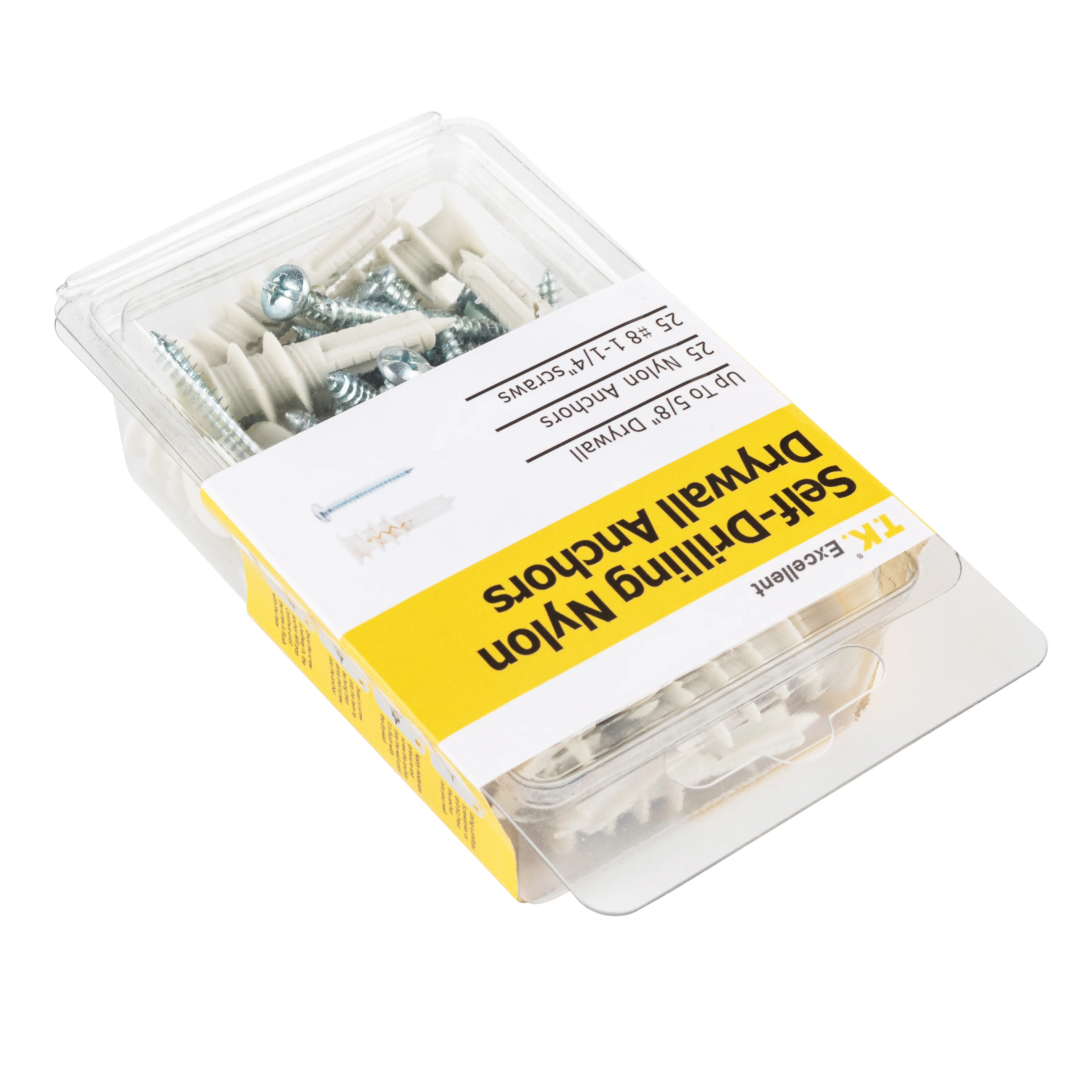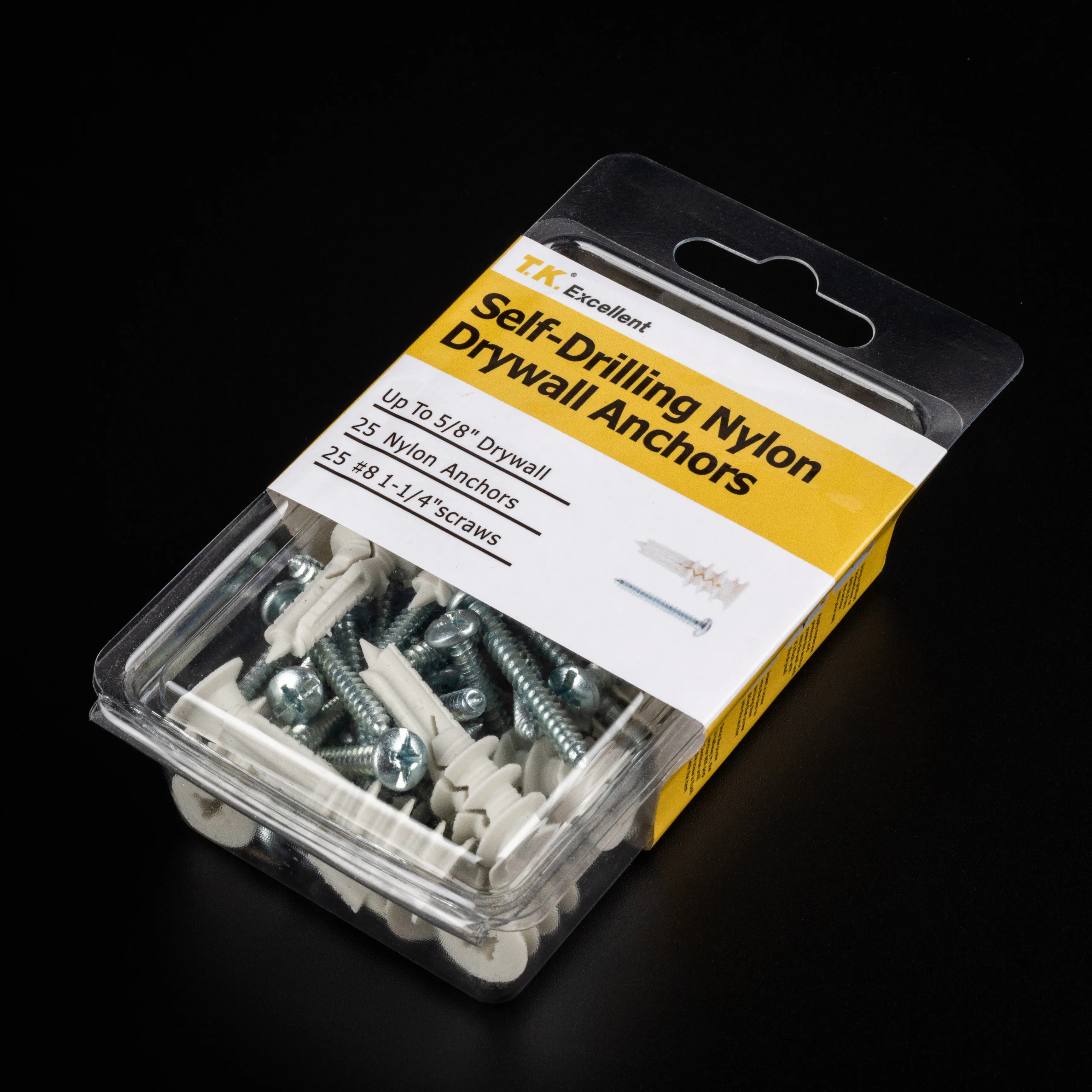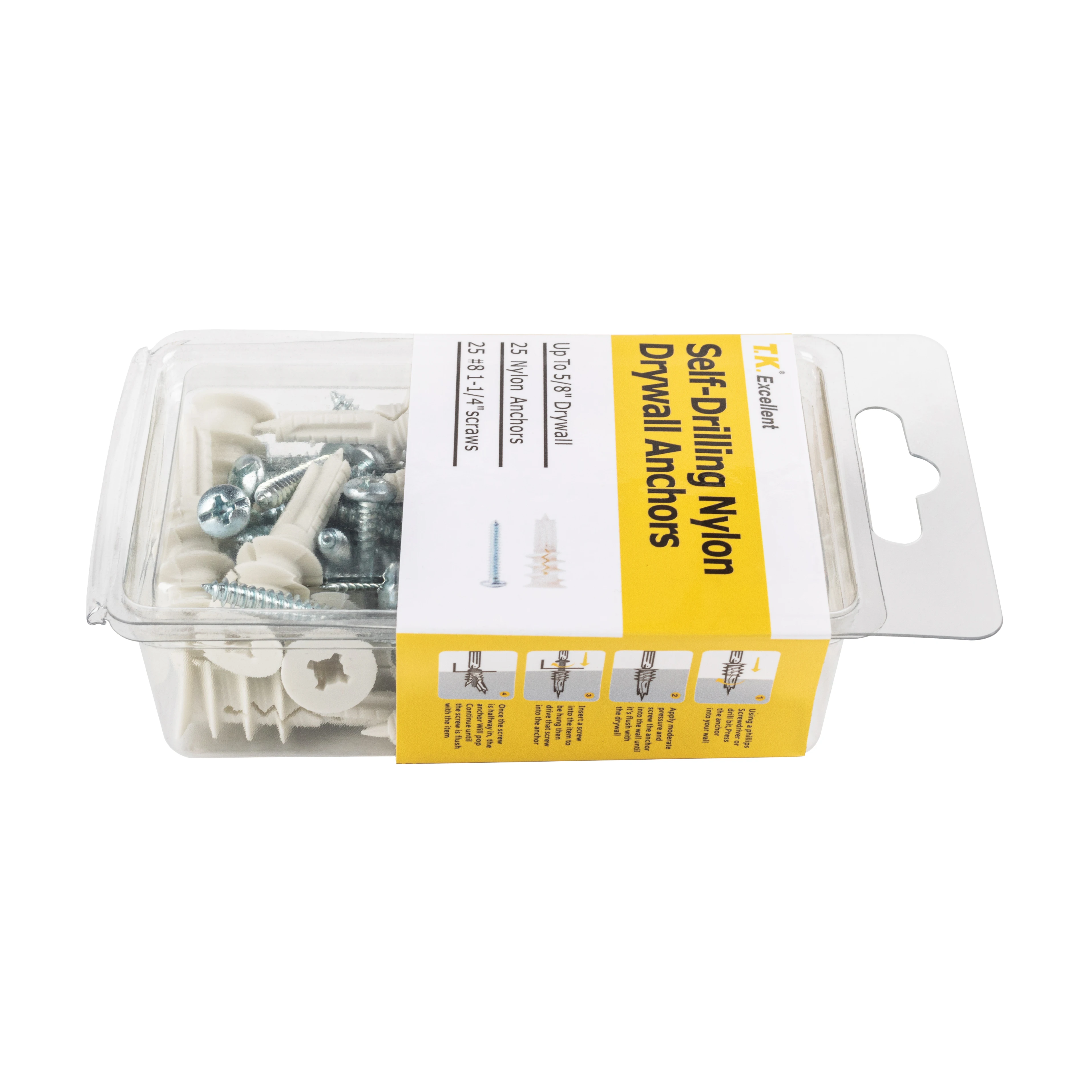 25 наборов самосверлящих гипсокартона пластиковых якорей с винтами