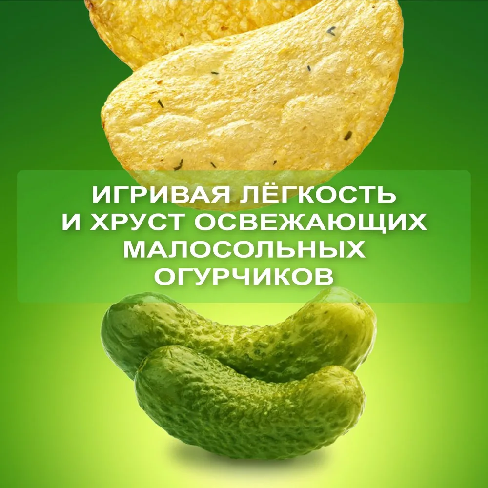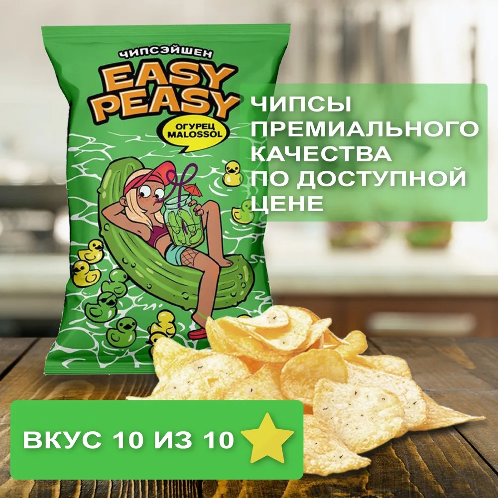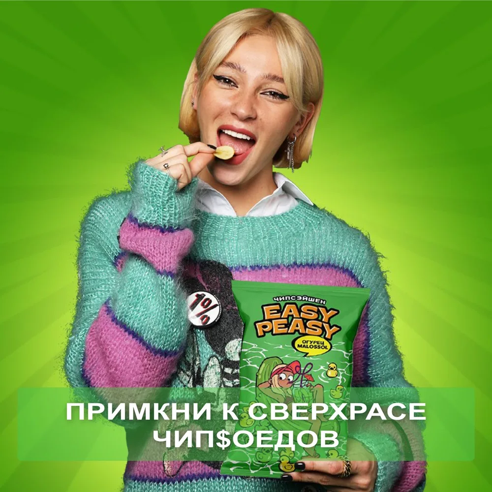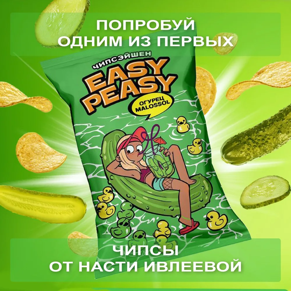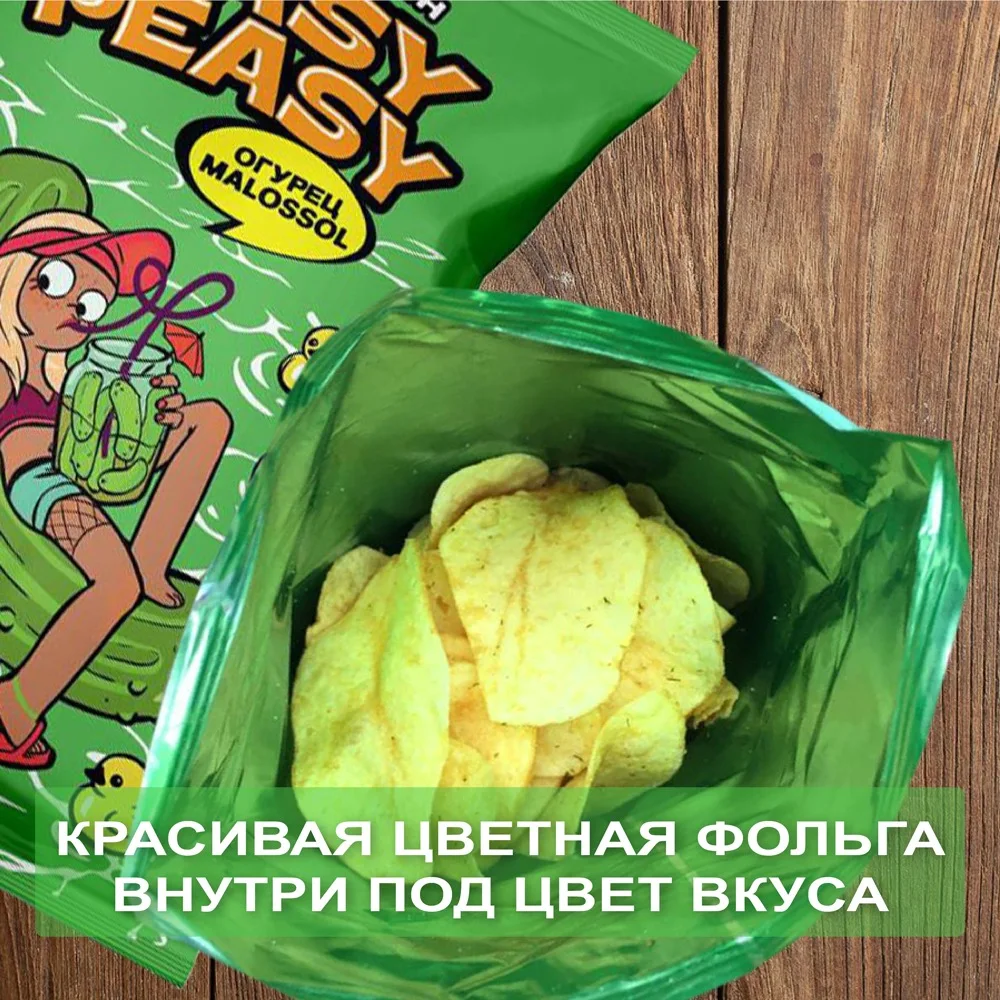 Игривая лёгкость и хруст освежающих малосольных огурчиков. Картофельные чипсы премиального качества по доступной цене. Созданы из топовой российской картошки и специй от ведущего немецкого производителя. Нескучный и модный дизайн, с которым не стыдно сделать селфи и устроить перекус ) Только у нас - красивая цветная фольга внутри под цвет вкуса. Одним словом, вкус, дизайн, упаковка - все для забалдительного настроения! А разве может быть иначе? Ведь это необычные чипсы от Насти Ивлеевой )
