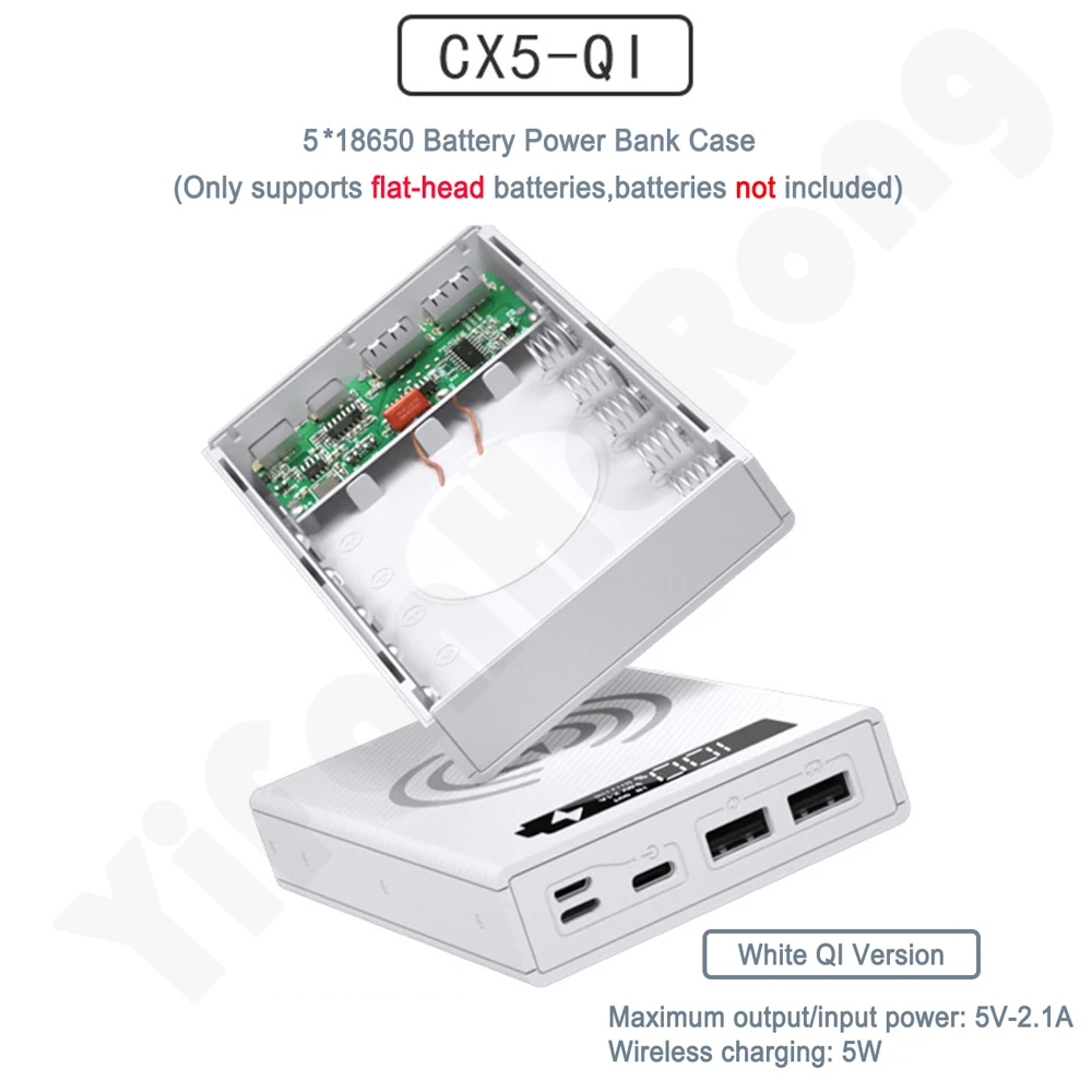1. Функция: цифровой дисплей с питанием, съемный, без сварки, с защитой от обратного соединения, может заряжать 5 18650 батарей с плоской головкой, когда встроенный аккумулятор может использоваться в качестве зарядного устройства, для обычной версии требуется зарядный кабель, для быстрой беспроводной зарядки версия не требует зарядного кабеля и может быть заряжена быстро.