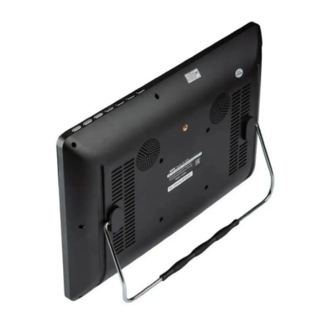 Подставка Пульт д.у. Инструкция Провода тюльпан Адаптер 220В. Технические характеристики: Диагональ: 17" дюймов (42,5 см), ЖК Разрешение: 1920x1080 Формат экрана: 16:9 Контрастность: 300:1 Входная частота: СВЧ 177,5 - 226,5 МГц ; УВЧ 474 - 866 МГц Модуляция: QPSK/16-QAM/64-QAM/256-QAM Стандарт декодирования: MPEG 1,2MP при HL, MPEG-4 SP&ASP при L5HD Интерфейсы: TV, AV IN, USB 2.0,HDMI, VGA, DC (12V) Поддерживаемые режимы звукового сопровождения: DK, I, BG DVB T2 частоты: 174-230 МГц (VHF), 470-862 МГц (UHF) Аналоговый прием: 48,25-863,25 МГц (все телевизионные каналы) Полная авто-поиск система Встроенные динамики: 2 x 4 Вт Встроенный Dolby Digital® Surround Sound декодер: 2 канала Дистанционное управление всех функций Поддерживаемые форматы аудио: MP3, WMA Поддерживаемые форматы фото: JPEG, BMP, PMG Поддержка других типов носители информации: USB Питание: источник переменного тока / авто 12В Многоязычное меню Внешний вид товара