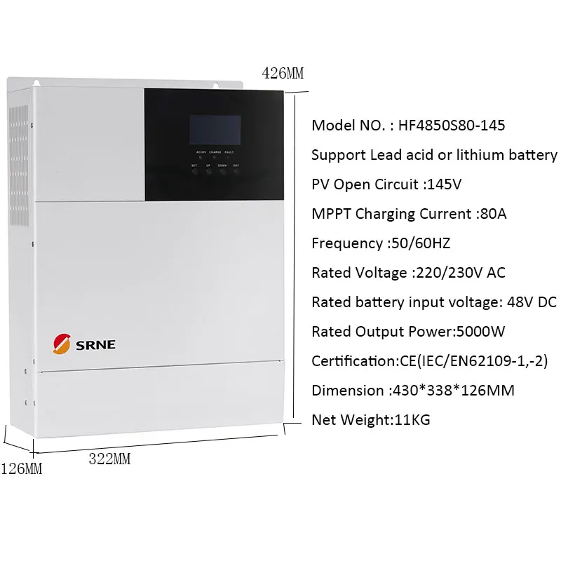 SNRE Гибридный инвертор 5000 Вт 220 В/230 В переменного тока 48 В постоянного тока 1 шт.