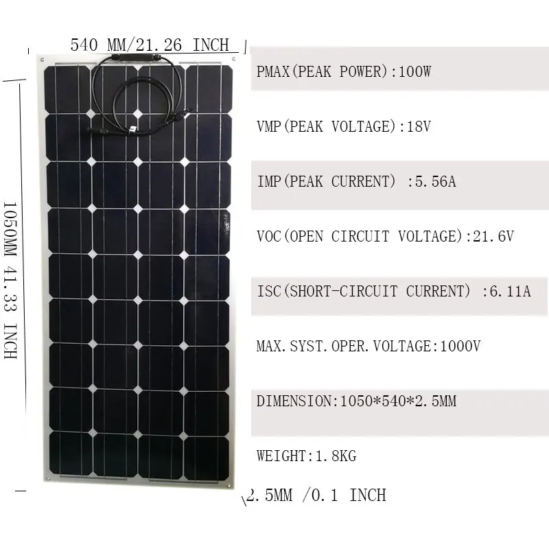 Гибкая Pet /Etfe солнечная панель 100 Вт 12В 12 шт
