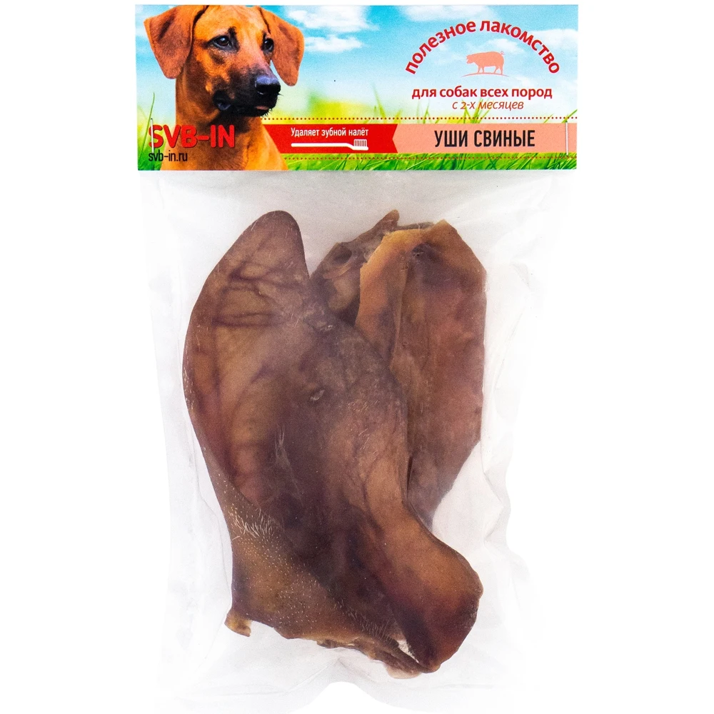Ухо свиное сушенное от компании SVB-IN имеет натуральный цвет, приятный запах, не пачкается, способствует развитию мышц челюсти и профилактики зубного камня, так же лакомство подойдет отлично как корм или легкий перекус. Рекомендовано для всех видов собак. Не удивляйтесь, если ваша собака будет пищать от удовольствия. Приготовлено из цельного продукта без отмачивания, без добавления красителей и консервантов. Только натуральный продукт, который любят абсолютно все. Ухо смачивается слюной и размягчается, становясь идеальным продуктом для безопасного жевания вашим питомцем. Лакомства для собак. Лакомства для мелких пород.