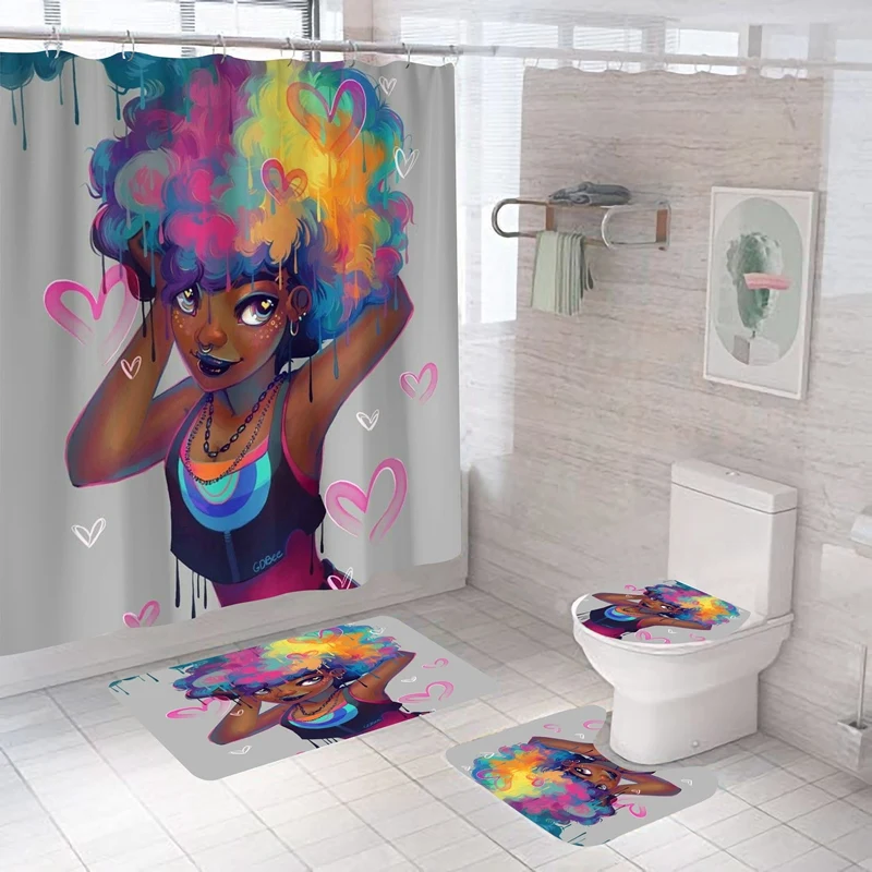 Индивидуальный афроамериканский женский красивый сексуальный милый черный женский афроцентричный водонепроницаемый набор для ванной Душевой Занавески