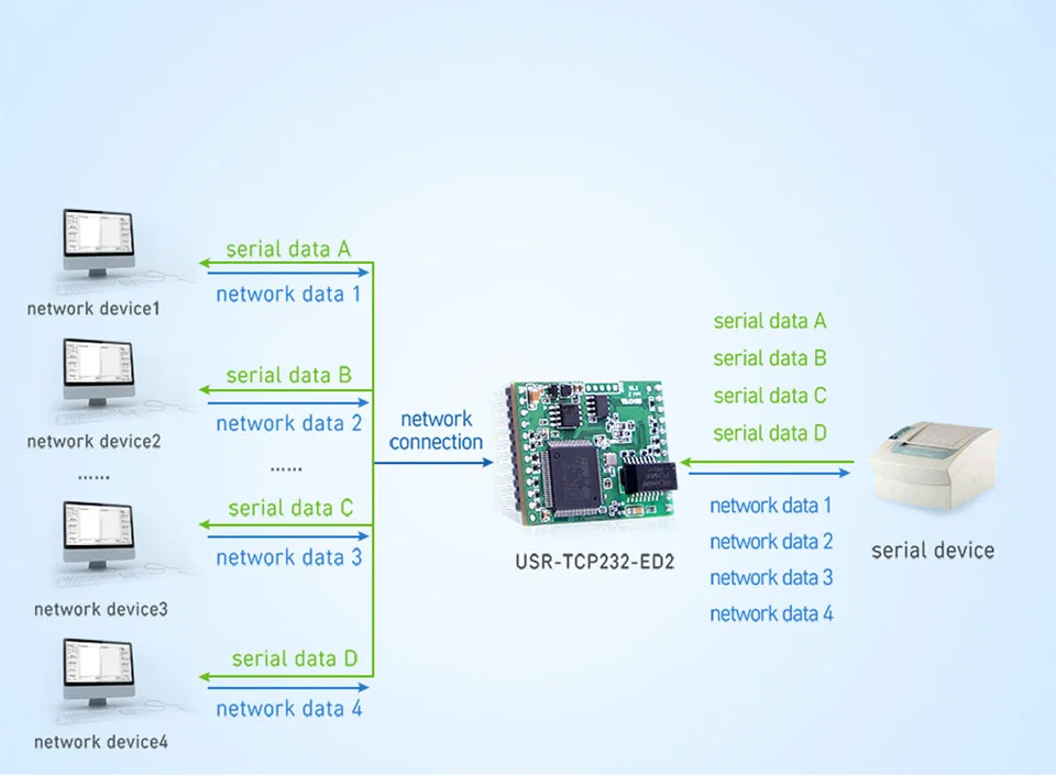 Новое ядро Cortex-M4, диапазон промышленных рабочих температур (-40 ~ 85 °), продуманная оптимизация стека протоколов TCPIP, Стабильная и надежная. Выбираемый порт UART, другой порт можно использовать вместе, работать независимо, различать подключенный последовательный порт через номер порта. Функция Auto-MIDX, дискретное подключение перекрестного или прямого сетевого кабеля, автоматическое переключение. Поддержка TCP сервера, TCP клиента, UDP, UDP сервера, HTTPD клиента, websocket, различных протоколов ethernet. Поддержка виртуального последовательного порта, предоставление соответствующего программного обеспечения. Максимальная скорость передачи данных от 300bps до 1024000bps(COM0 только макс. 256000bps). Широкий вход напряжения, больше приложений. Поддержка DHCP, автоматический доступ к IP, может запросить устройство в сети через протокол трансляции UDP (с помощью программного обеспечения USR-TCP232-E45 настройки). Поставка протокола для vip-клиентов Предоставьте ПК TCP/IP SOCKET programming пример, VB, C + +, Delphi, Android, IOS. Встроенная веб-страница, а также настройка параметров через Интернет, может настроить веб-страницы для пользователей. Также можно установить через UDP broadcast, предоставить настроенный протокол. Кнопка перезагрузки, кнопка восстановления настроек по умолчанию. Светильник индикатора состояния RJ45, встроенный изолирующий трансформатор интерфейса RJ45, изоляция 2 кв. Глобальный Уникальный MAC-адрес, купленный у IEEE, пользователь может определить MAC-адрес (укажите, когда делаете заказ). Поддержка обновления прошивки через сеть. Поддержка посещения IP и доменного имени одновременно Поддержка до 8 звеньев от клиента, когда он выступает в качестве TCP сервера, те же данные будут отправлены всем клиентам. Можно изменить порт http сервера из порта по умолчанию 80 для встроенного модуля http сервера. Поддержка Keepalive, быстро обнаруживает мертвую ссылку и обеспечивает более стабильное соединение.