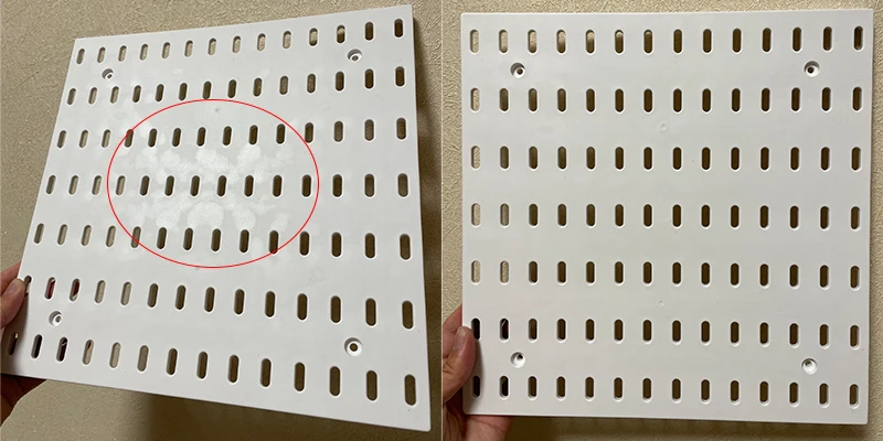Pegboard изготовлен из пластика. Из-за ограничений метода обработки, pegboard будет иметь следы, похожие на масляные пятна под определенным светильник и углом. Не является проблемой качества товара, не имеет пятен и не влияет на нормальное использование.