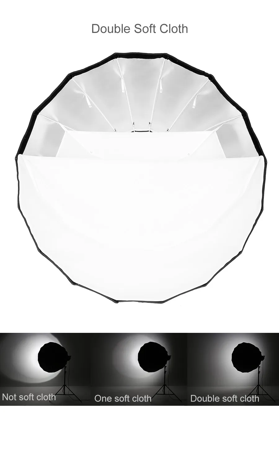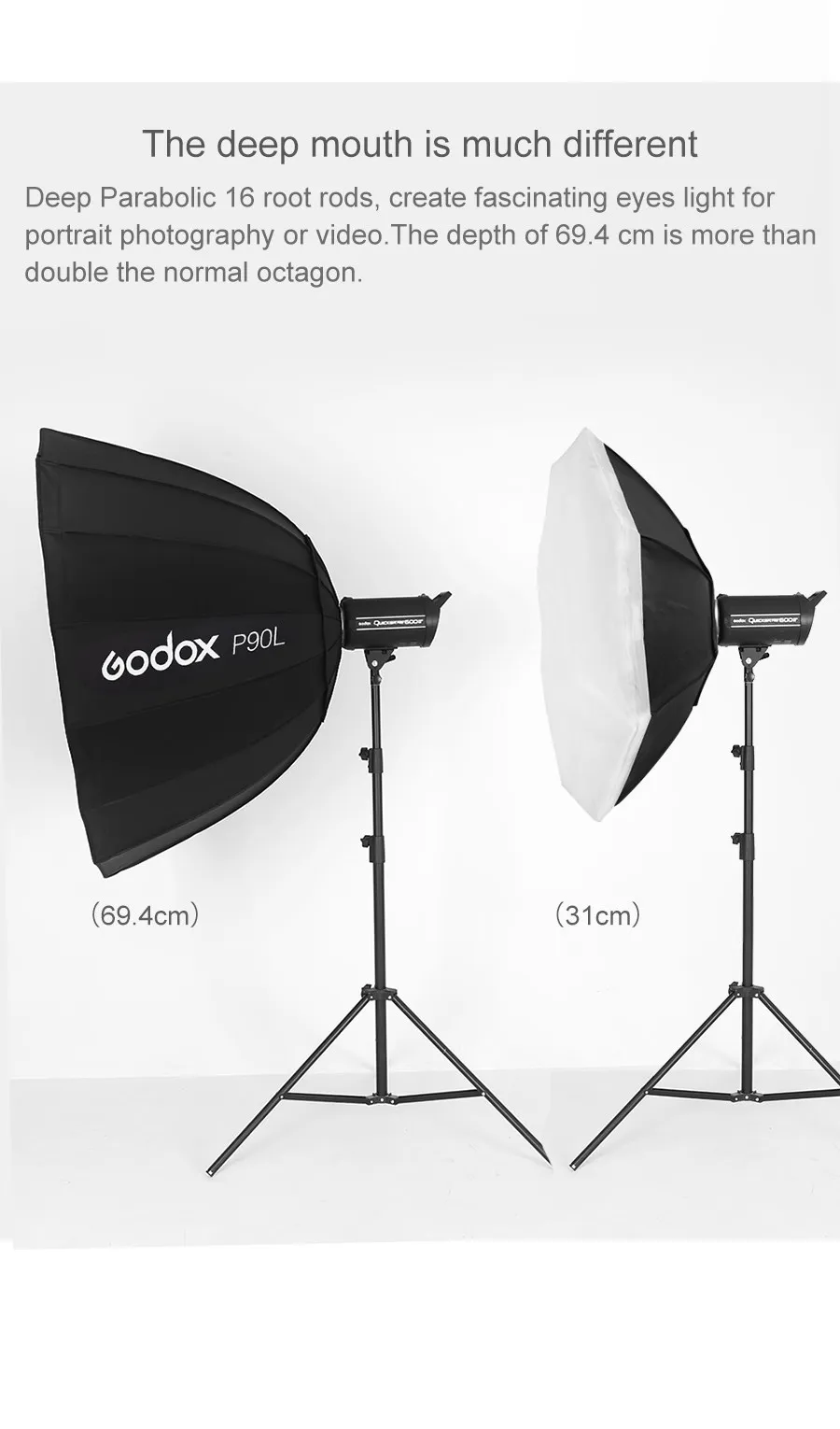 Godox портативный P90L 90 см Глубокий параболический софтбокс Bowens крепление студийная вспышка Speedlite отражатель Фотостудия софтбокс Особенности:Глубокий параболический дизайн коробкиРаботайте как негабаритный отражатель, который хорошо подходит для светильник концентрации и получает светильник эффекты с мягкой и высокой насыщенностью. По сравнению с другими аналогичными изделиями: более легкие и гладкие.Надежный и прочныйУстойчивость к ветру, давлению и падению.Длительный срок службыСофтбокс принимает 16 стекловолокно премиум-класса, для стержней из стекловолокна-светильник и портативный.Отличная портативностьС сумкой, P90L весит только 1,5 кг. Легкий и портативный.Широкий спектр примененияПодходят для студийной и наружной съемки.Удобно устанавливать, экономит время и без усилий.
