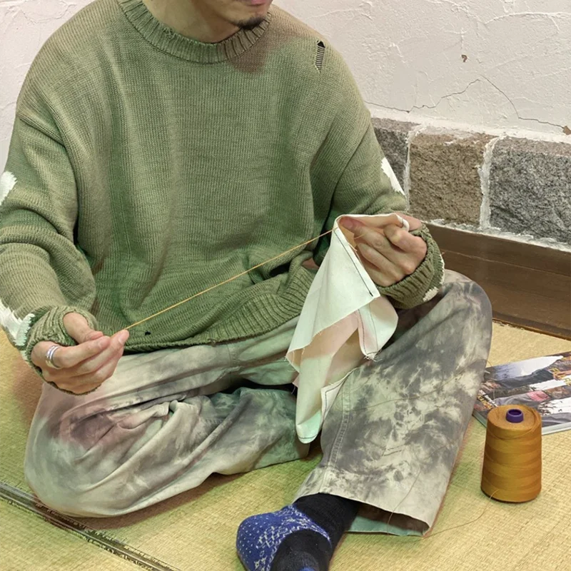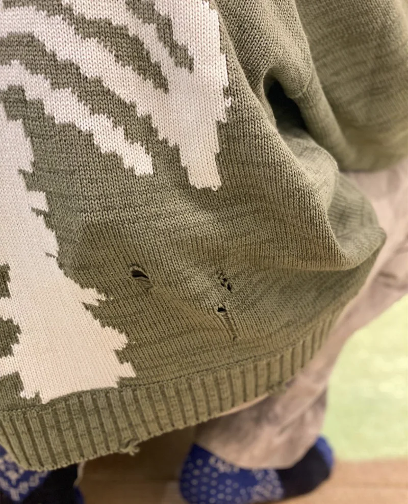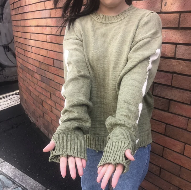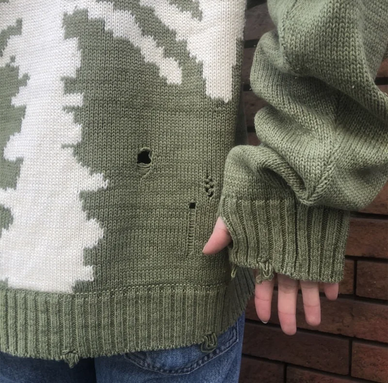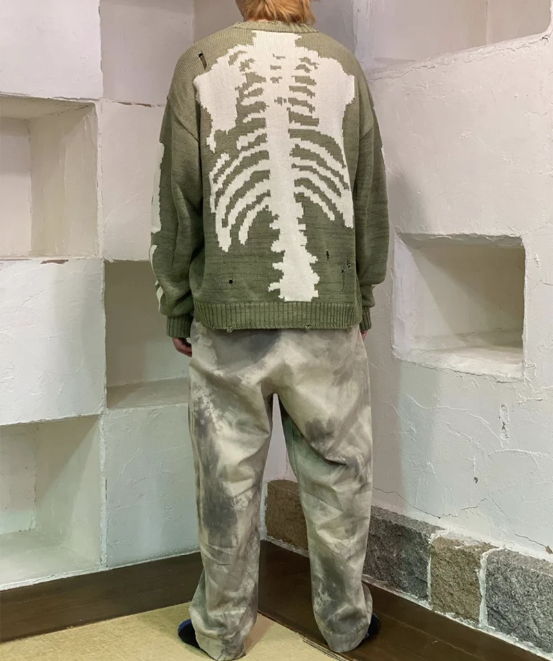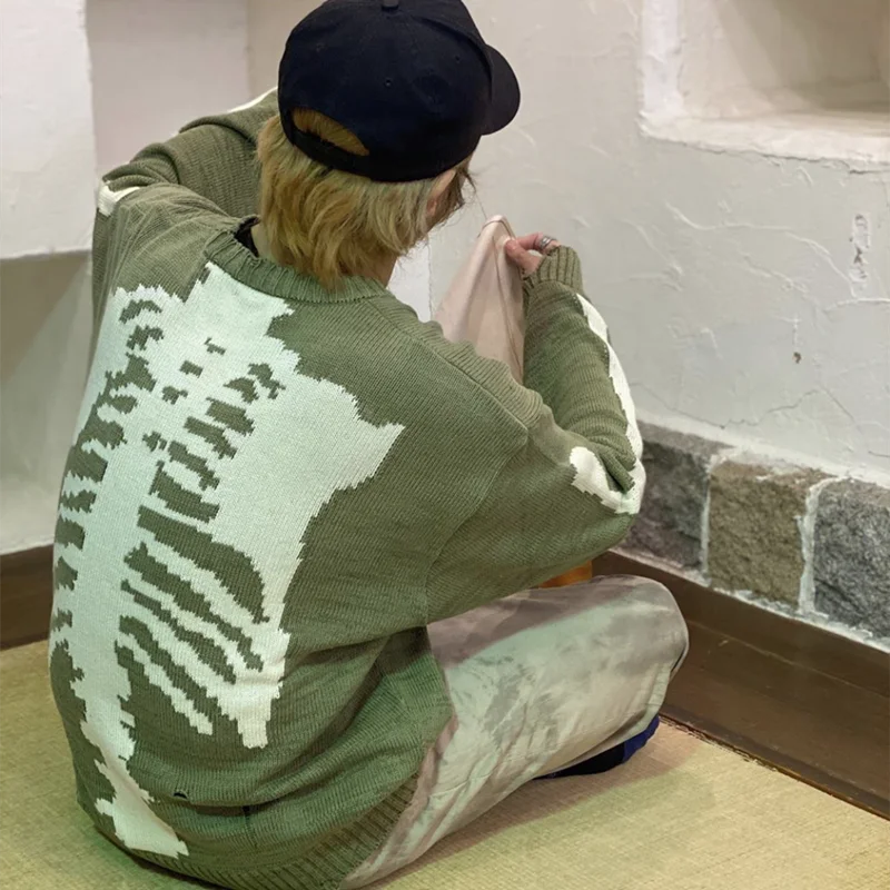 Мужской Свитер оверсайз, зеленый, свободный, с принтом скелета, с костями, женский, высокое качество, уличный, с дырками, винтажный, 1:1, вязаный свитер