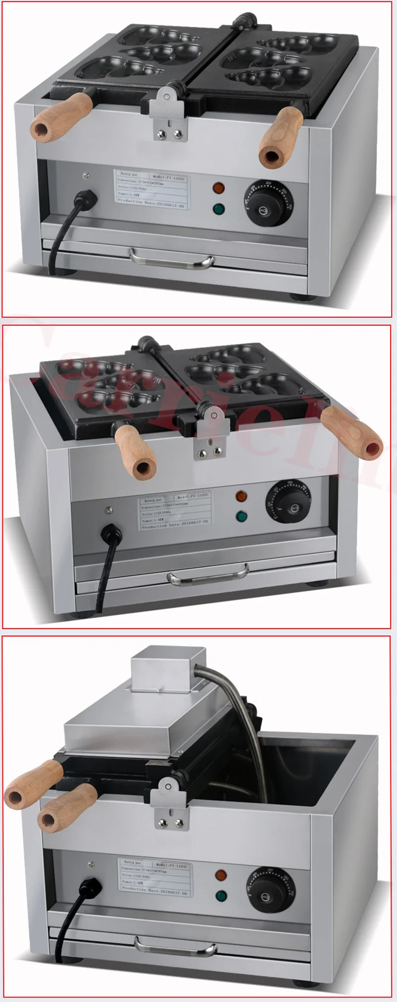 Directly Factory Price CE Approved 220V Commercial 6pcs Defecate Waffle Maker Custom Plate Defecate Shape Waffle Maker Machin
