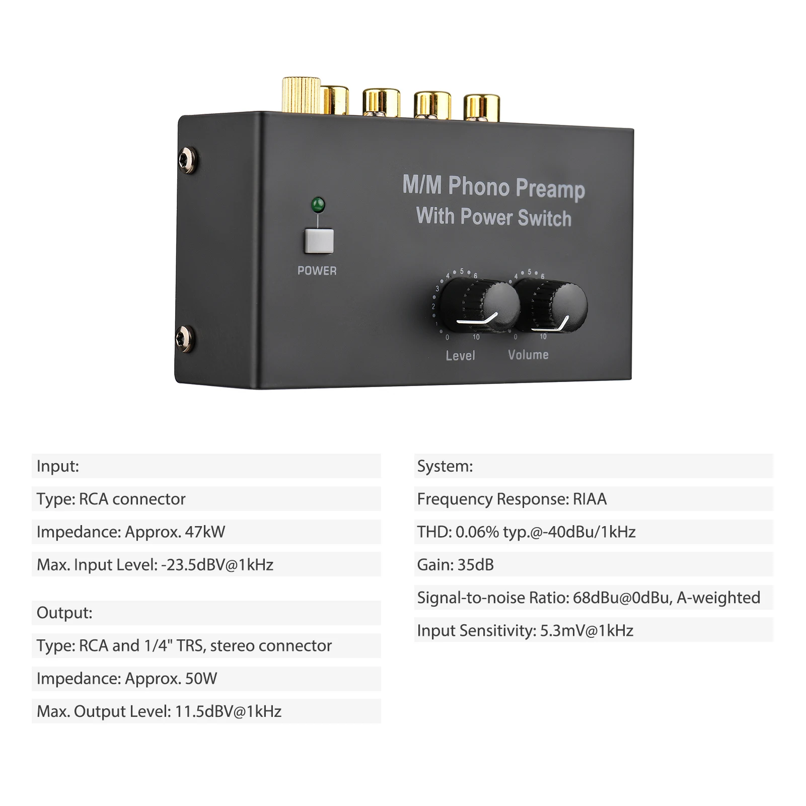 M/M Phono Preamp с выключателем питания ультра-компактный преусилитель с уровнем и регулятором громкости RCA входной и выходной интерфейс