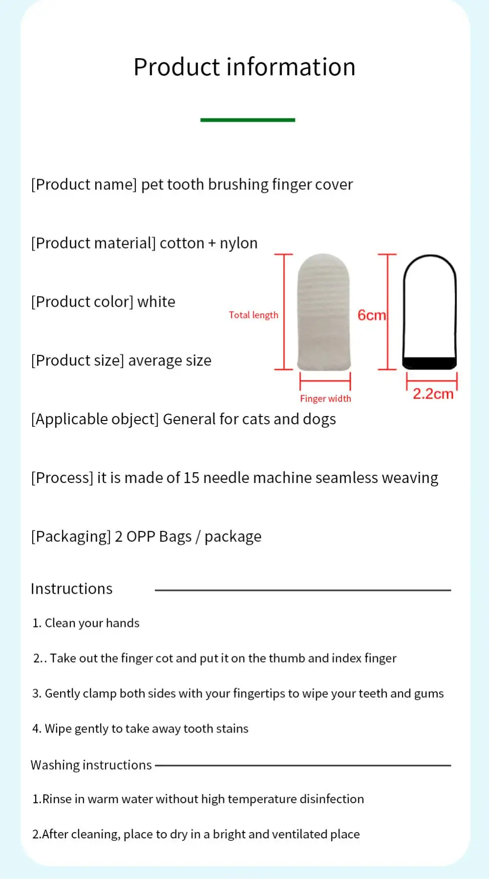 Название: ПЭТ эластичная хлопковая щетка для чистки пальцев